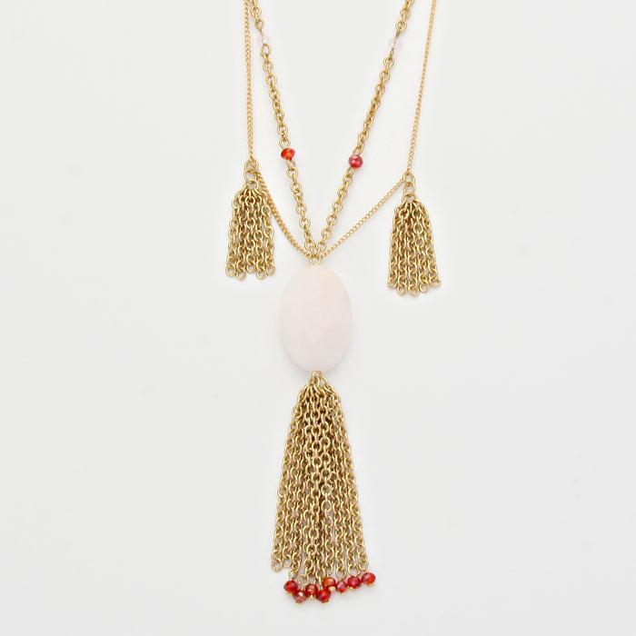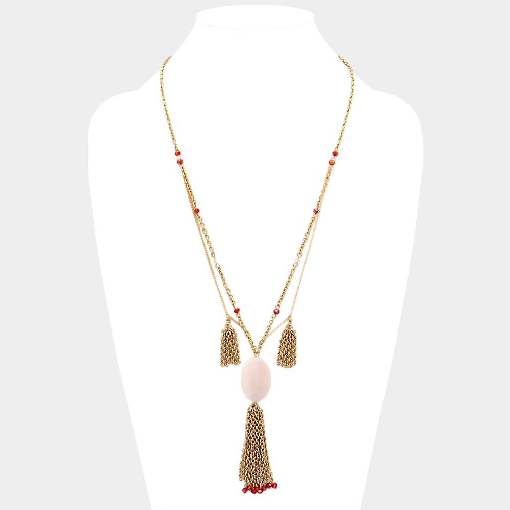 Oval Stone Accented Tassel Drop Necklace