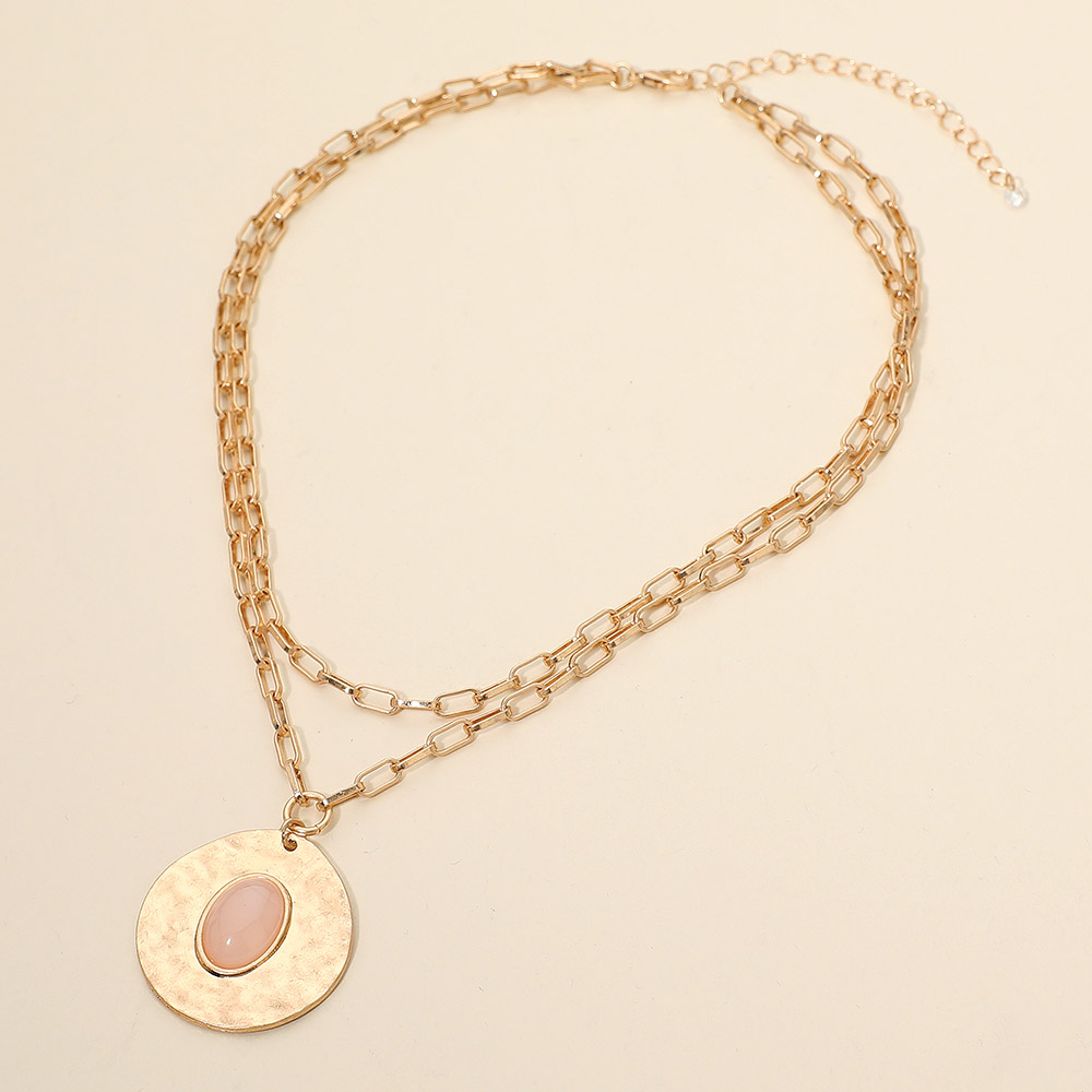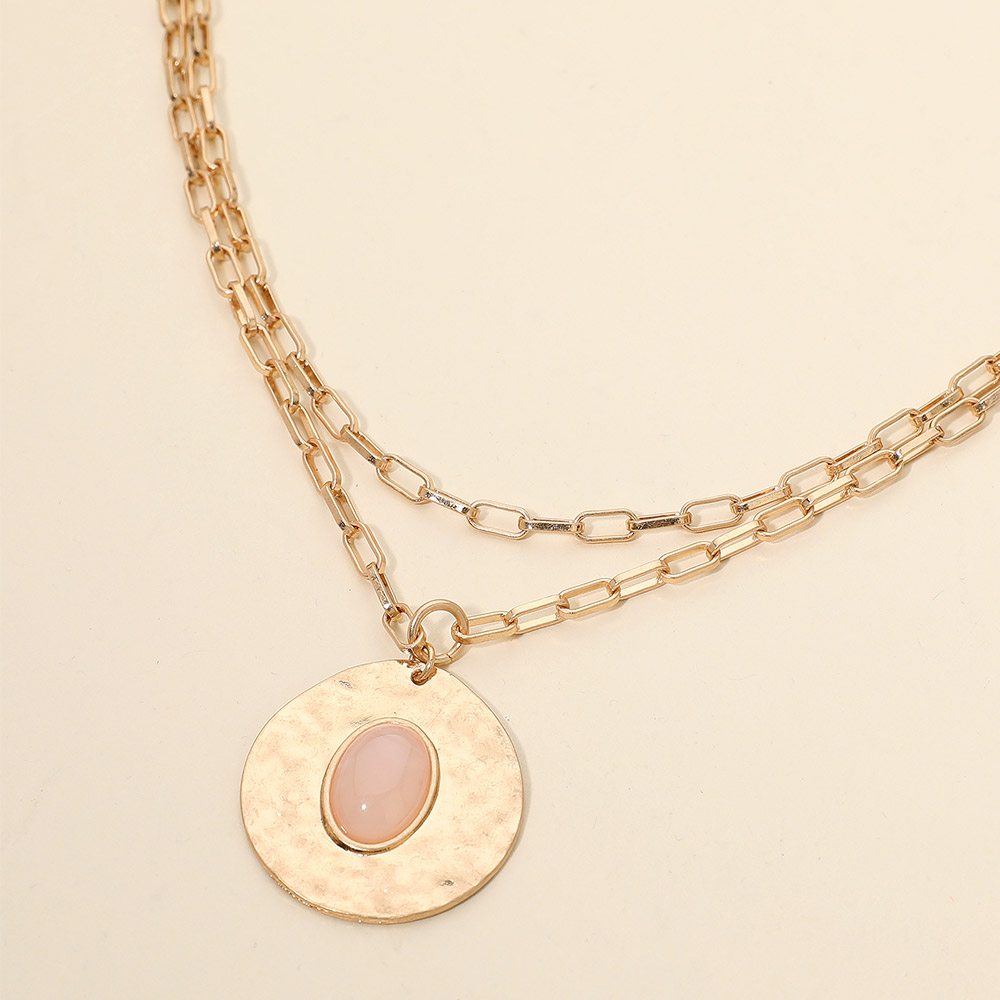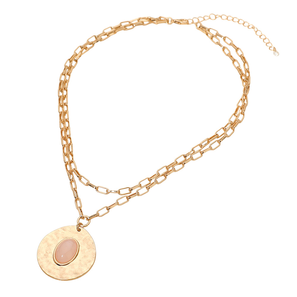 Oval Stone Center Hammered Disc Pendant Layered Necklace Oval Stone Center Hammered Disc Pendant Layered Necklace Oval Stone Center Hammered Disc Pendant Layered Necklace