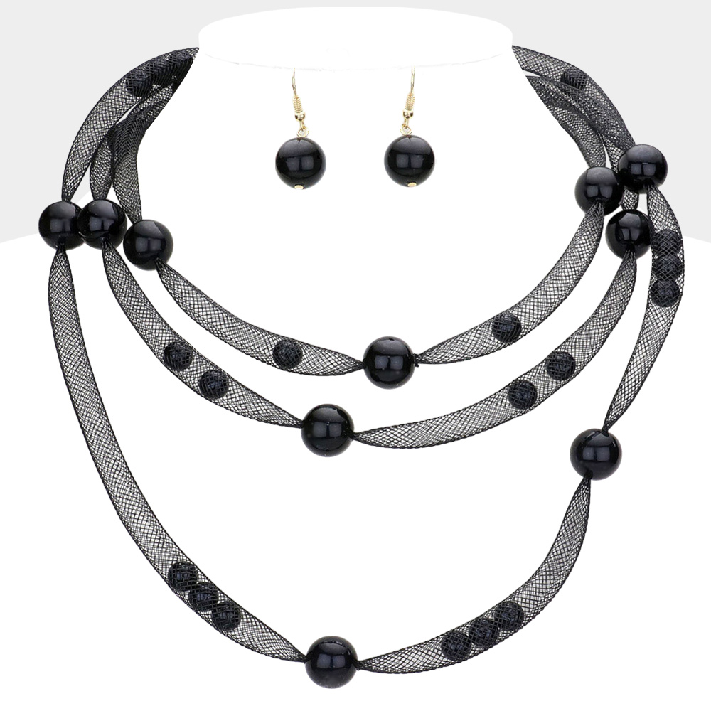 Pearl Accented Triple Layered Mesh Bib Necklace