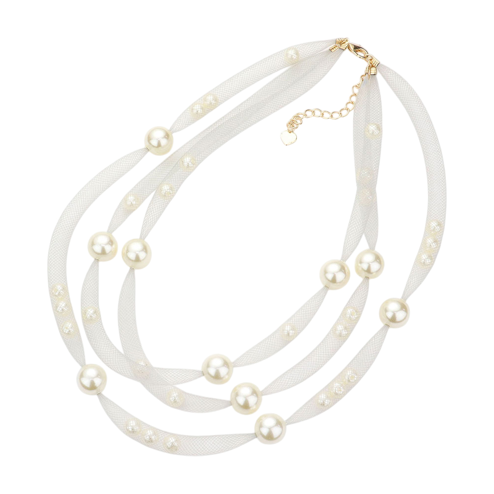 Pearl Accented Triple Layered Mesh Bib Necklace