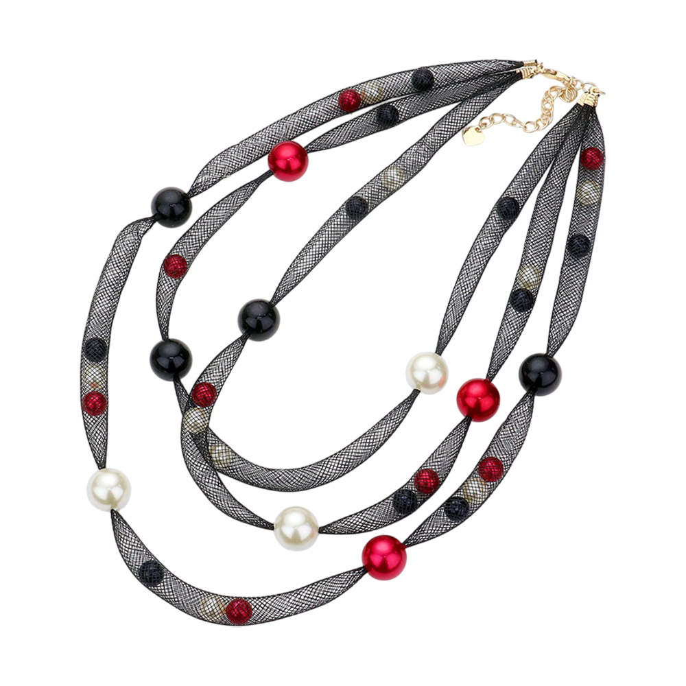 Pearl Accented Triple Layered Mesh Bib Necklace