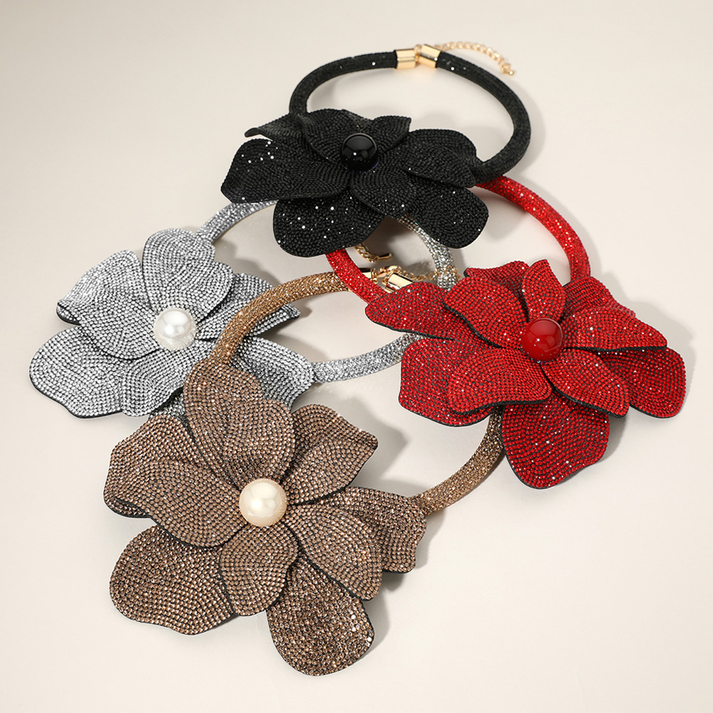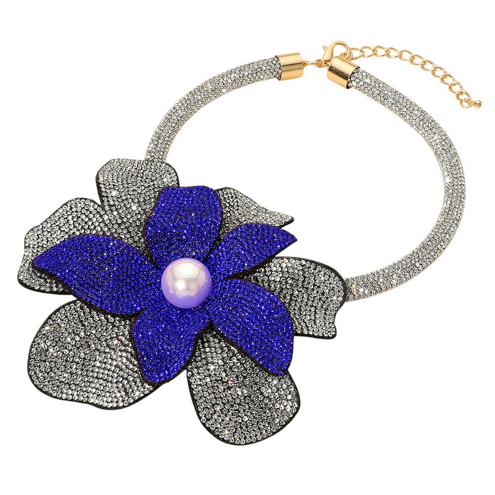 Details • Necklace Size : 17" + 3.25" L • Decor Size : 5" L • Turn heads with this bold statement necklace featuring a large beaded flower with textured petals and a pearl-like center. A striking accessory perfect for special occasions, themed outfits, or standout fashion moments. • Lead and Nickel Compliant