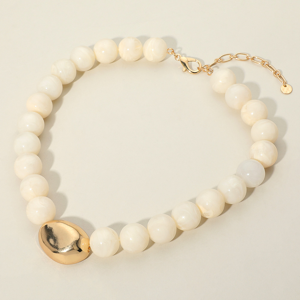 • Make a bold impression with this beaded statement necklace, featuring smooth round beads and a polished metallic accent. Perfect for elevating your style with a touch of artistic flair and modern charm.