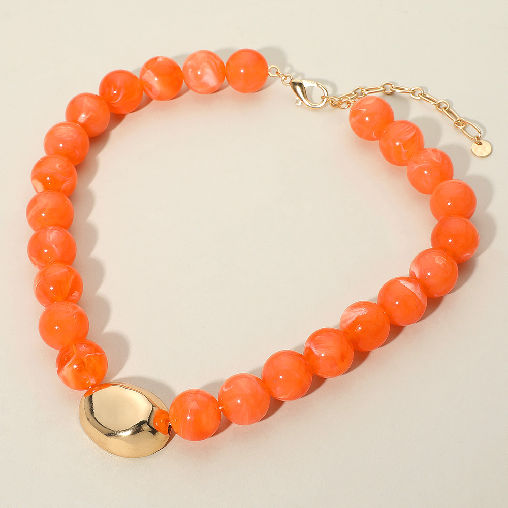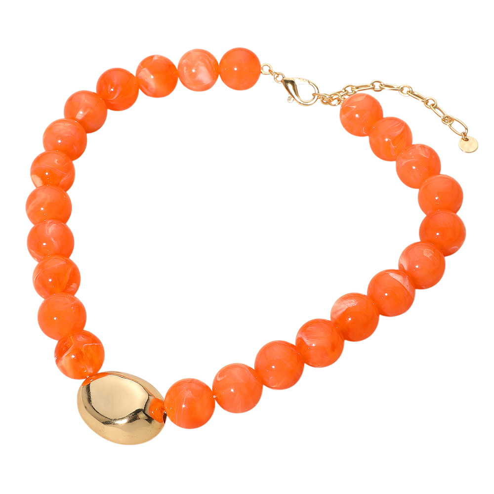 • Make a bold impression with this beaded statement necklace, featuring smooth round beads and a polished metallic accent. Perfect for elevating your style with a touch of artistic flair and modern charm.