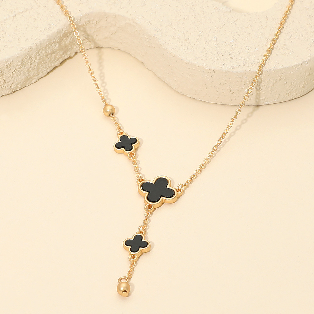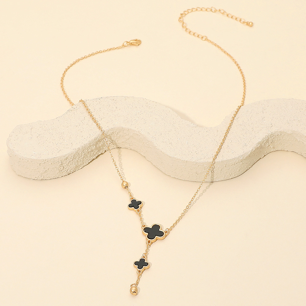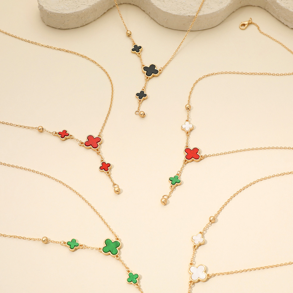 • This elegant quatrefoil charm necklace features a cascading trio of delicate motifs that bring a touch of luck and refinement to any look. Its graceful design adds subtle sophistication, making it perfect for layering or wearing solo as a chic everyday statement.