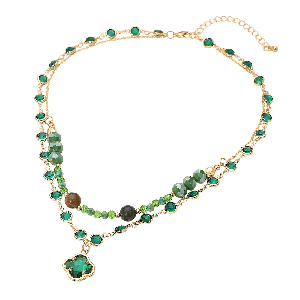 Details • Necklace Size : 16" + 3" L • Decor Size : 3" L • Pendant Size : 0.6" X 0.6" • Stylish dual-layer necklace with intricate bead detailing and a statement quatrefoil pendant for a refined, modern accent. Designed to elevate casual looks or complement evening wear, it layers beautifully with other pieces and makes a thoughtful gift choice for any special occasion. • Lead and Nickel Compliant
