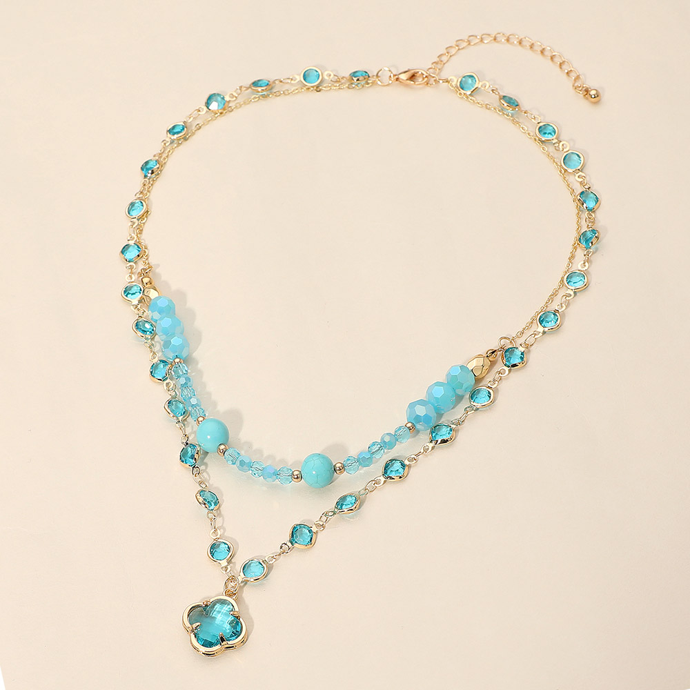 Details • Necklace Size : 16" + 3" L • Decor Size : 3" L • Pendant Size : 0.6" X 0.6" • Stylish dual-layer necklace with intricate bead detailing and a statement quatrefoil pendant for a refined, modern accent. Designed to elevate casual looks or complement evening wear, it layers beautifully with other pieces and makes a thoughtful gift choice for any special occasion. • Lead and Nickel Compliant