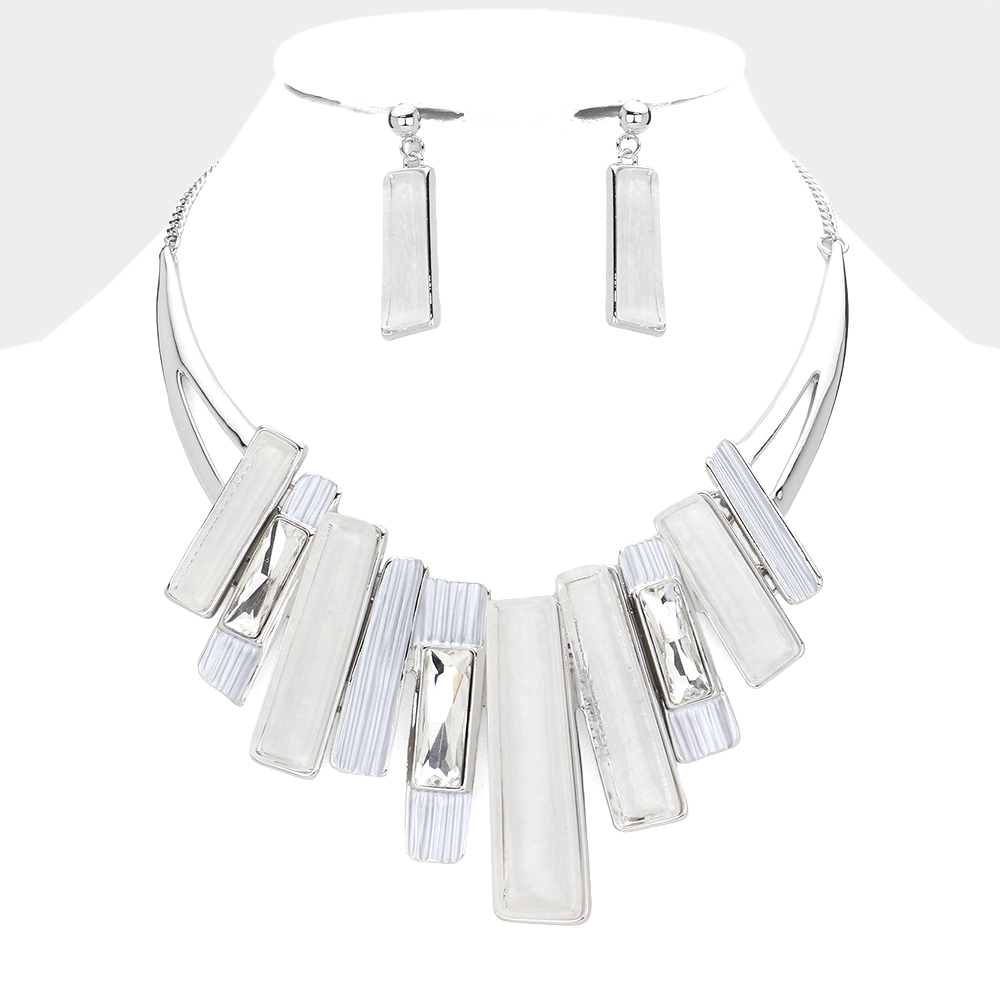 Rectangle Stone Pointed Colored Metal Necklace