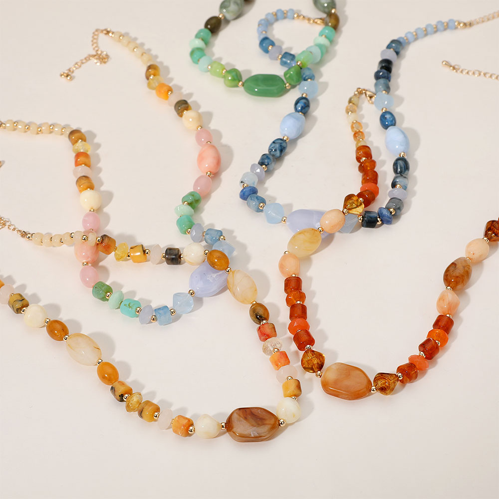 Details • Necklace Size : 15.5" + 3" L • Decor Size : 0.6" L • This beaded statement necklace showcases a mix of unique shapes and textures for an elegant and artistic look. Designed to elevate any outfit, it blends sophistication with modern charm, making it a versatile accessory that transitions seamlessly from day to evening style. • Lead and Nickel Compliant