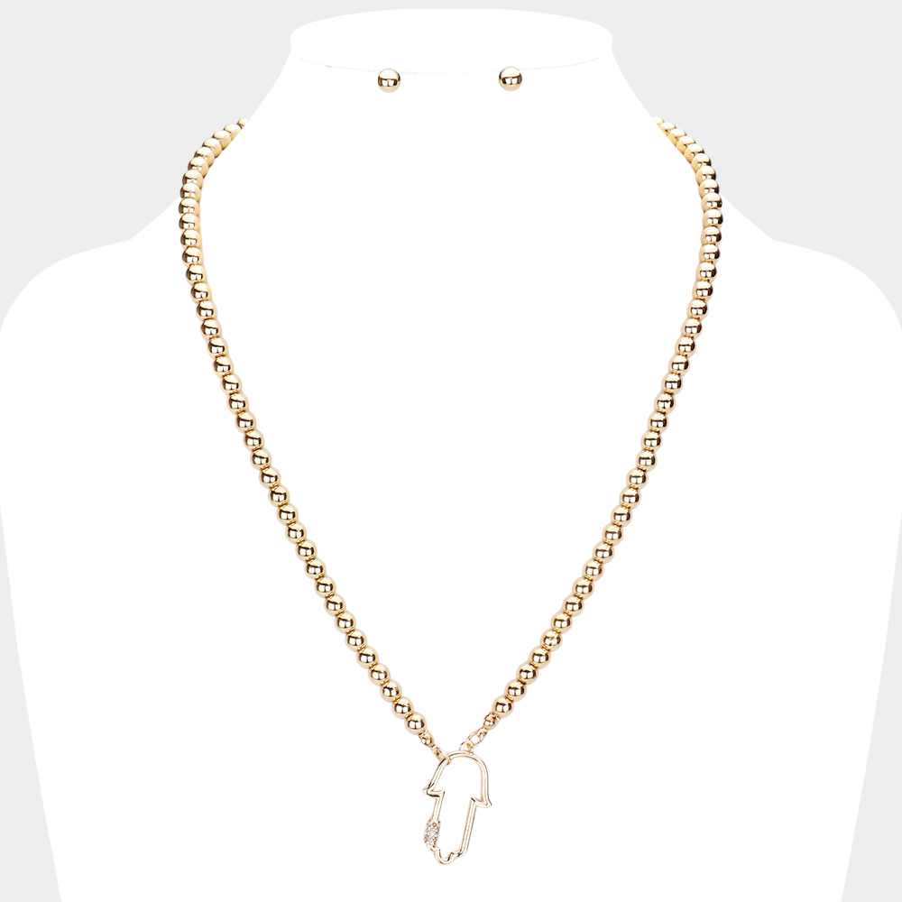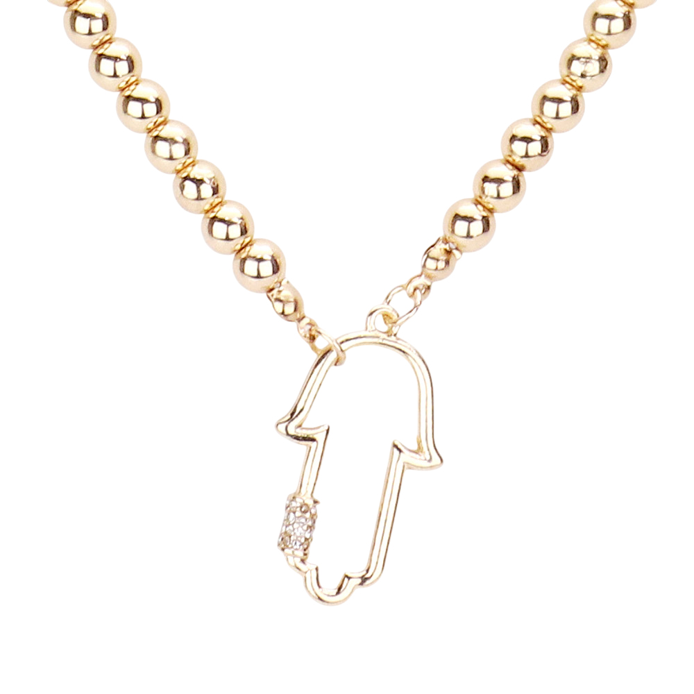 Rhinestone Embellished Hamsa Hand Pendant Necklace