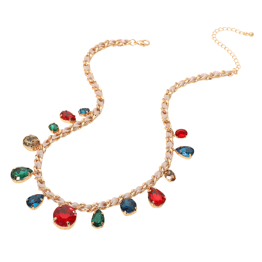 Round Teardrop Stone Cluster Station Bow Braided Chain Necklace Round Teardrop Stone Cluster Station Bow Braided Chain Necklace Round Teardrop Stone Cluster Station Bow Braided Chain Necklace
