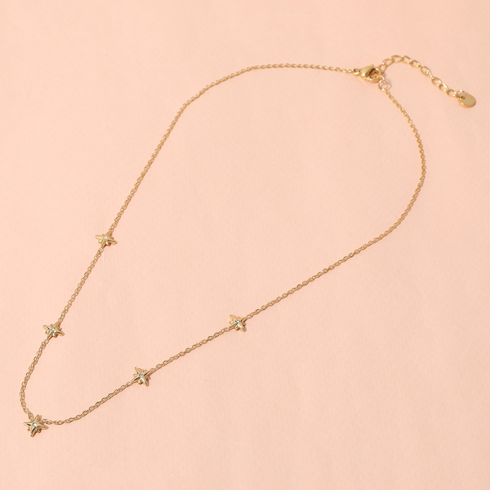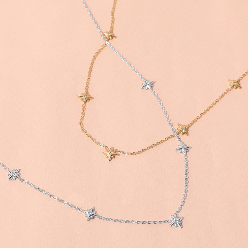 SECRET BOX_Stainless Steel Stone Pointed Starburst Station Necklace
