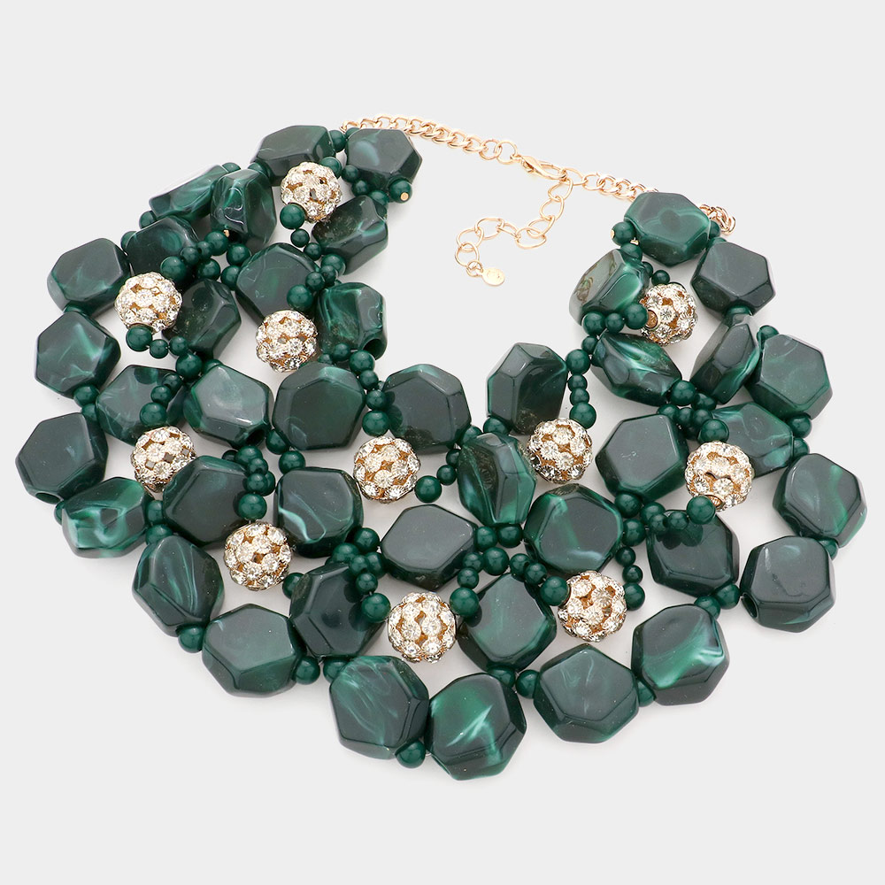 Marbled Metal Teardrop Stone Embellished Plated Statement Necklace