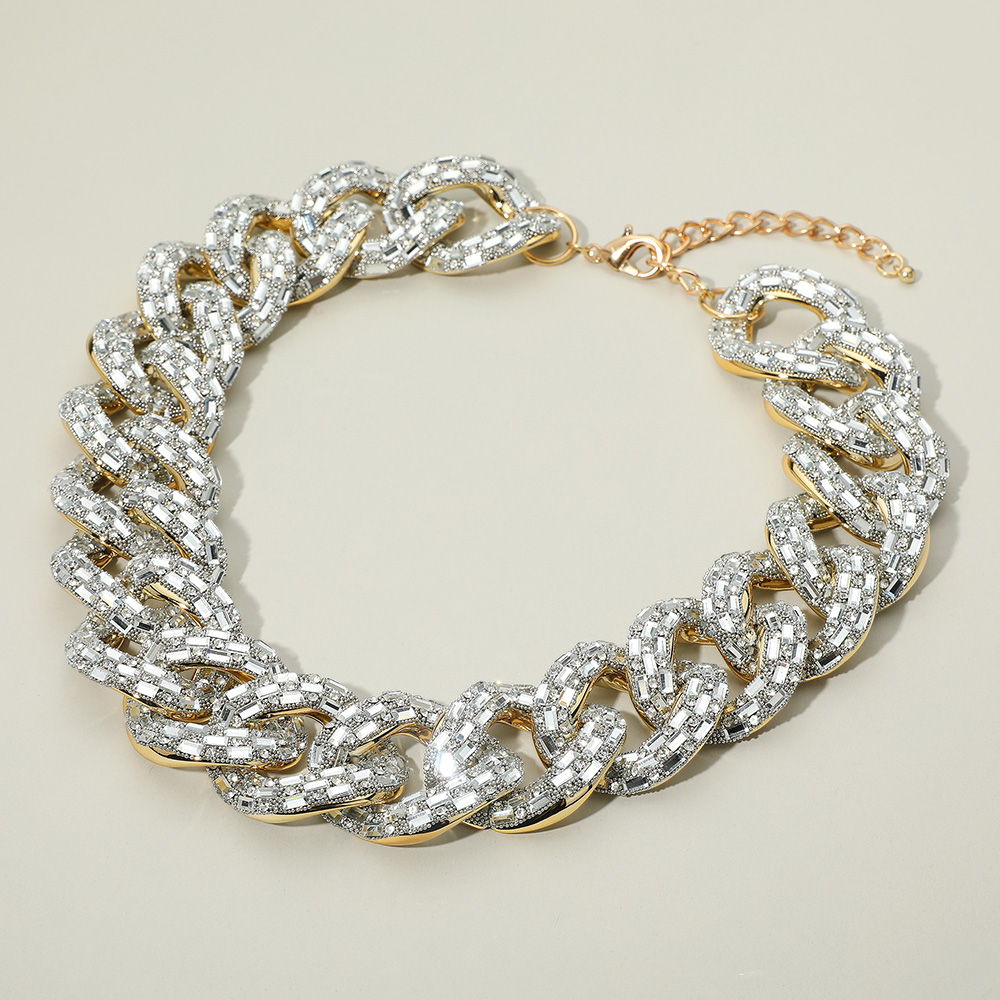 • Elevate your style with this striking chain-link necklace designed for modern trendsetters. Featuring oversized interlocking links with shimmering accents, it’s perfect for making a statement at parties, events, or as a standout everyday accessory.