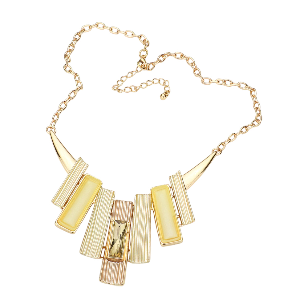 Stone Embellished Colored Metal Rectangle Link Necklace