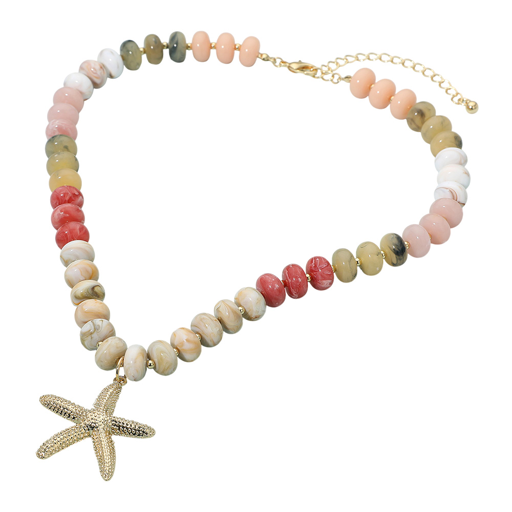 • Playful beaded necklace featuring colorful round beads accented with a textured starfish pendant. A vibrant and stylish accessory perfect for beach outings, summer looks, or adding a fun coastal vibe to everyday wear.