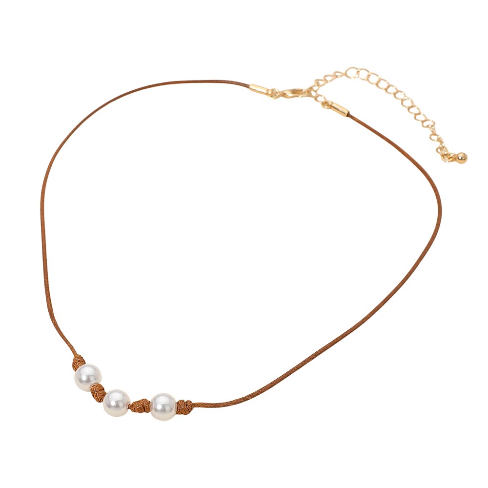Triple Pearl Beaded Waxed Cord Chain Necklace Triple Pearl Beaded Waxed Cord Chain Necklace Triple Pearl Beaded Waxed Cord Chain Necklace