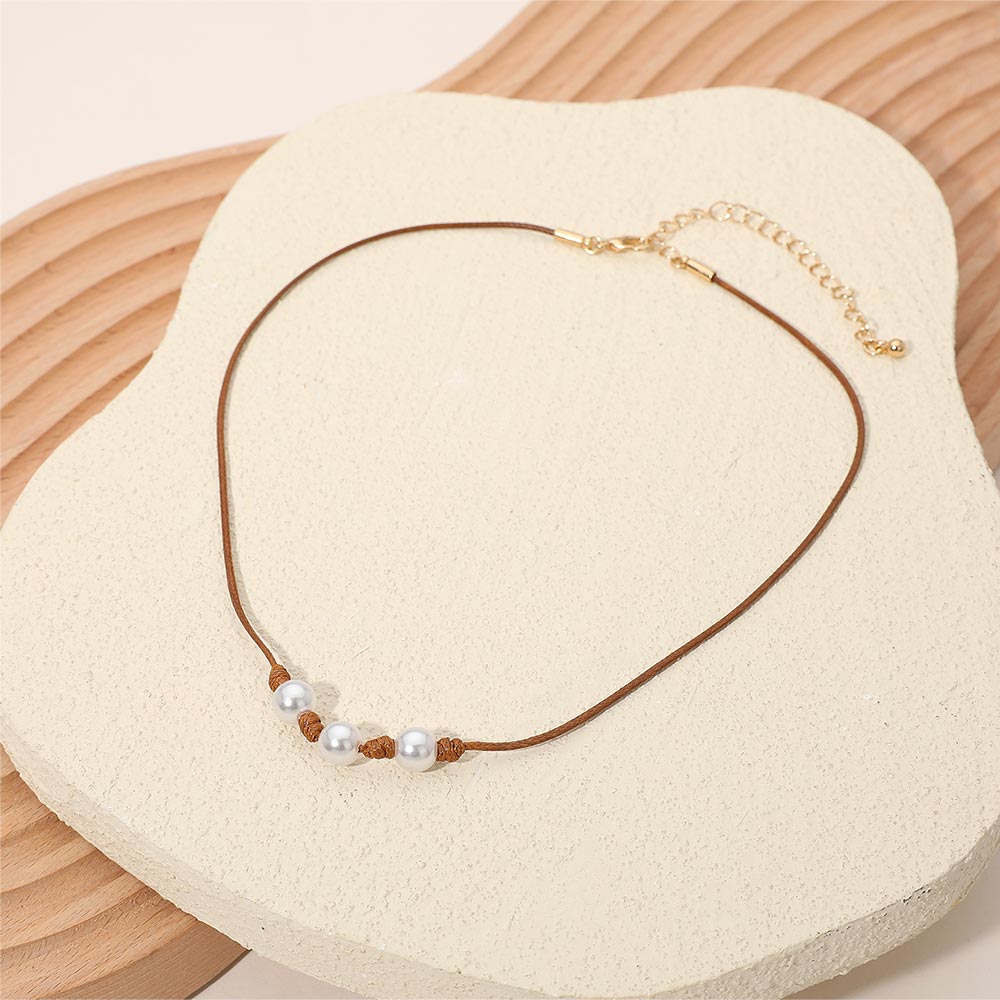 Triple Pearl Beaded Waxed Cord Chain Necklace