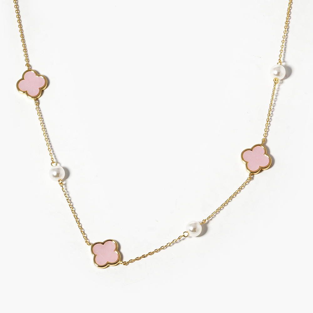Gold Dipped Mother of Pearl Quatrefoil Station Necklace