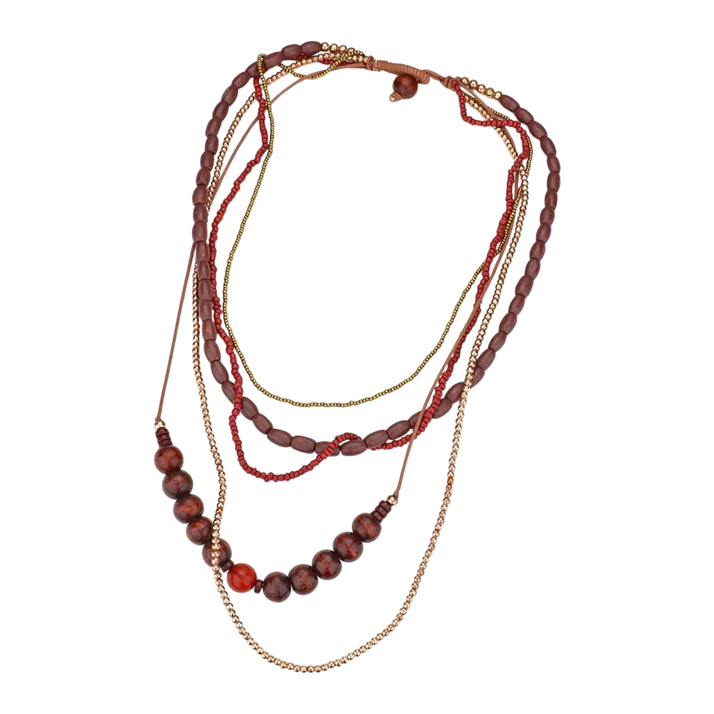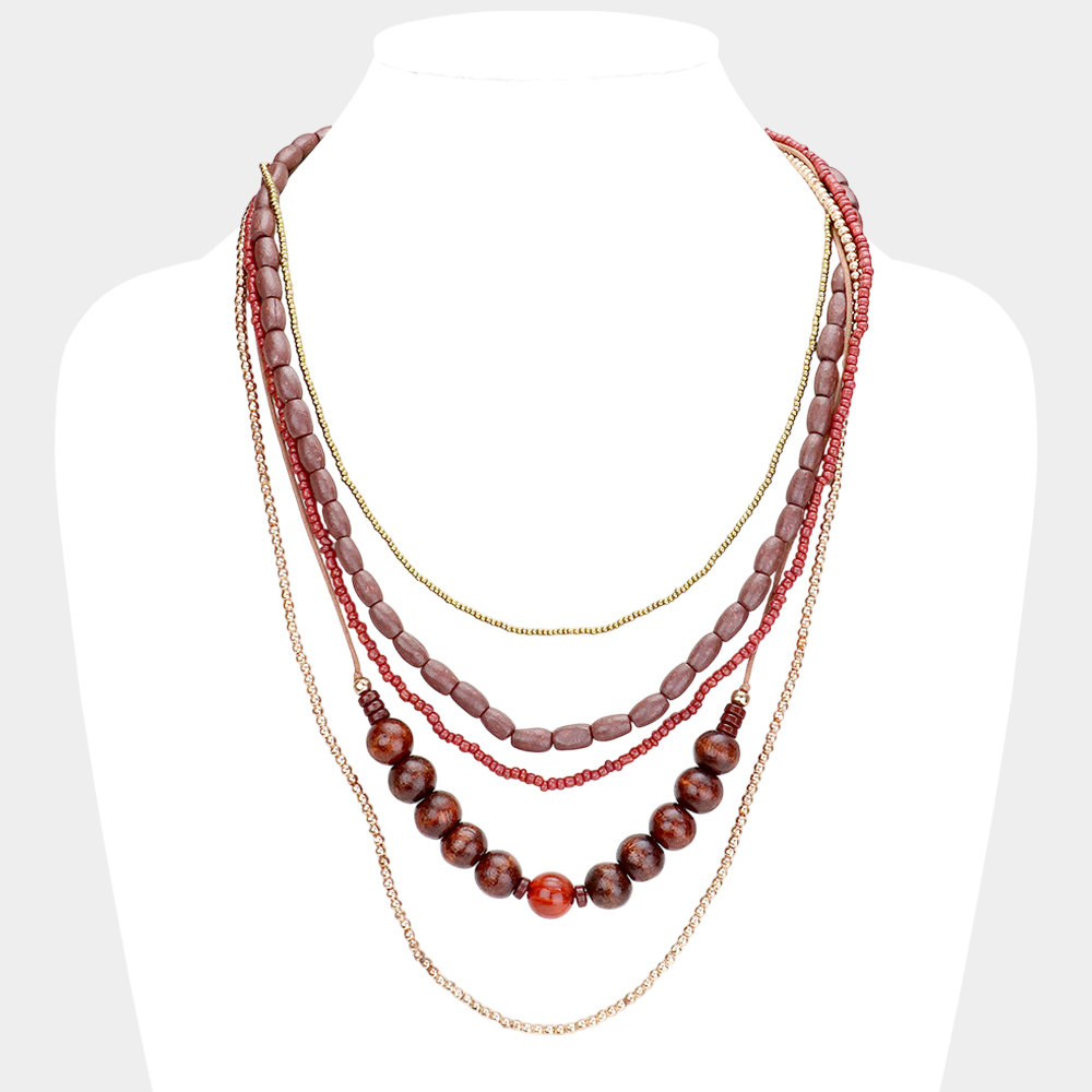 Mixed Charm Beaded Multi Layered Thread Strand Statement Necklace