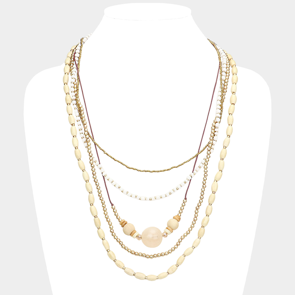 Wood Multi Layered Bib Necklace