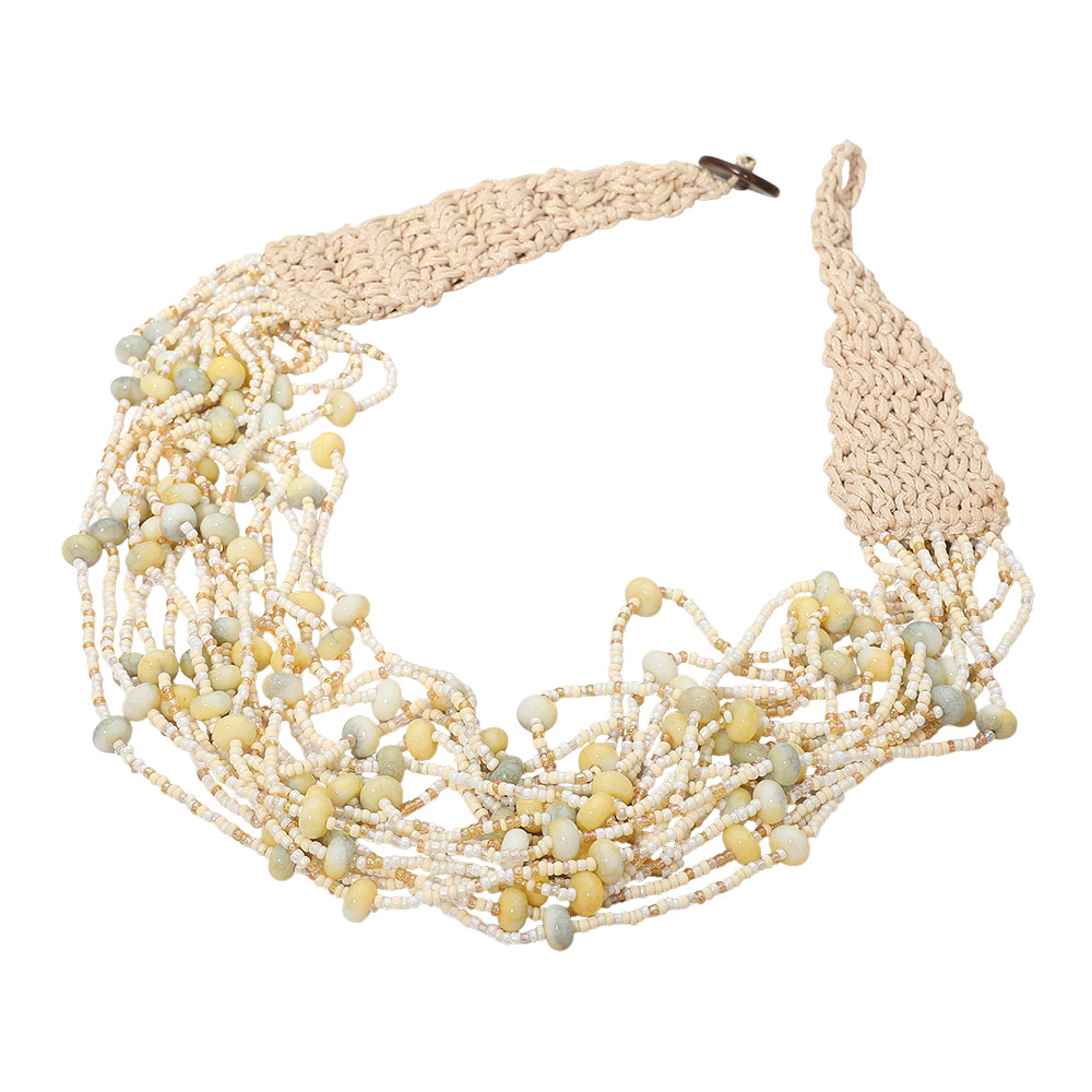 Woven Detail Multi Strand Seed Beaded Collar Statement Necklace