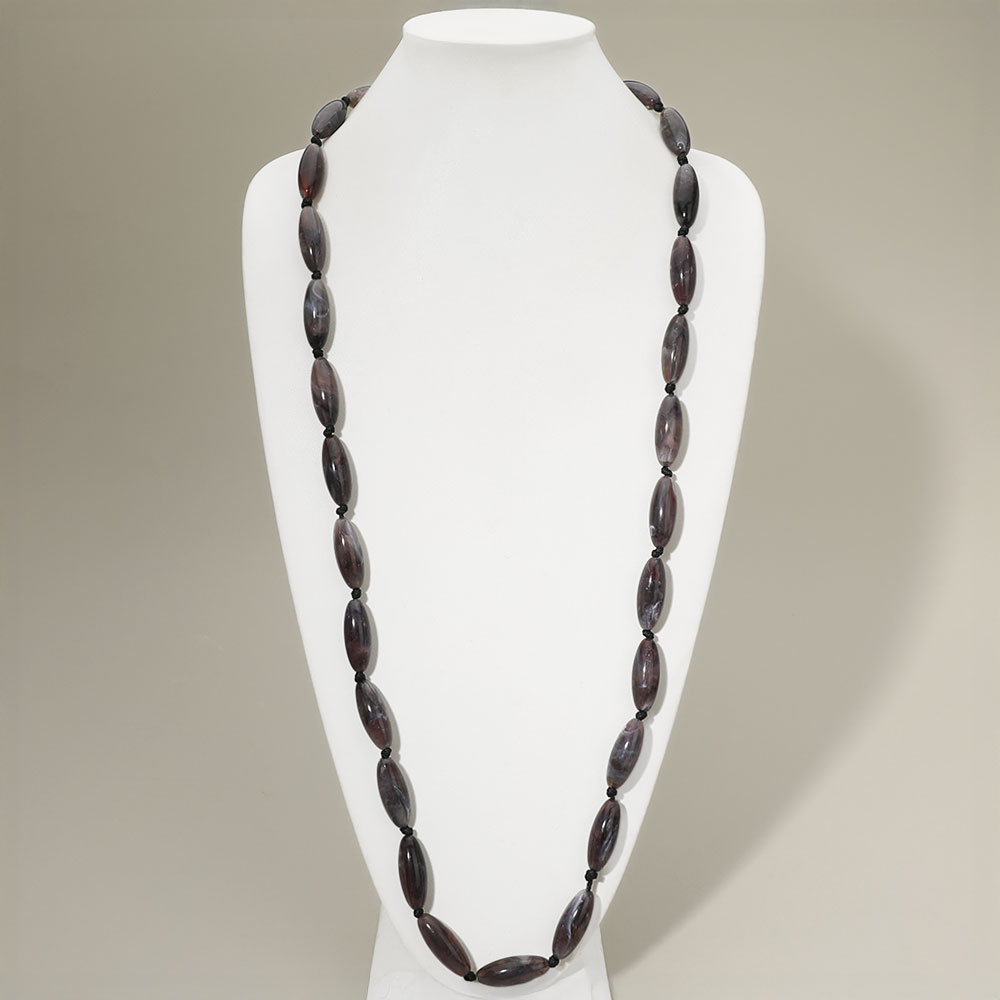 Details • Necklace Size : 46" L • Adjustable • Elegant long beaded necklace featuring smooth oval beads with a polished finish. Designed with an adjustable length for versatile styling, this chic statement piece adds a touch of sophistication and contemporary flair to both casual and dressy looks. • Lead and Nickel Compliant