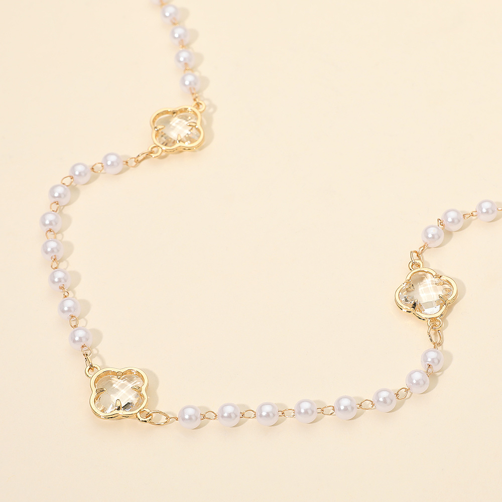 Details • Necklace Size : 36" + 3.5" L • Decor Size : 0.6" L • A delicate strand featuring evenly spaced round pearl accents and quatrefoil-inspired connectors that create a graceful, balanced look. Perfect for everyday elegance or special occasions with a refined, timeless aesthetic. • Lead and Nickel Compliant