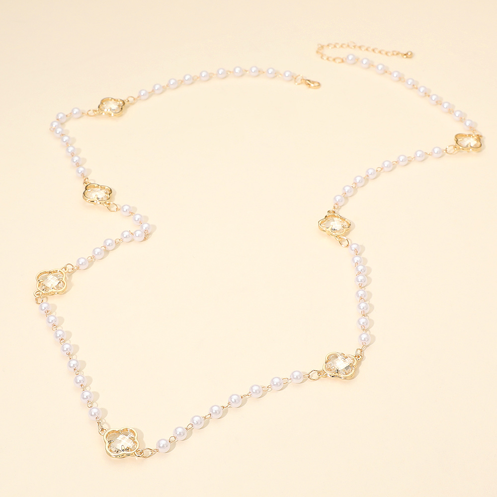 Clear Quatrefoil Cluster Station Pearl Long Necklace