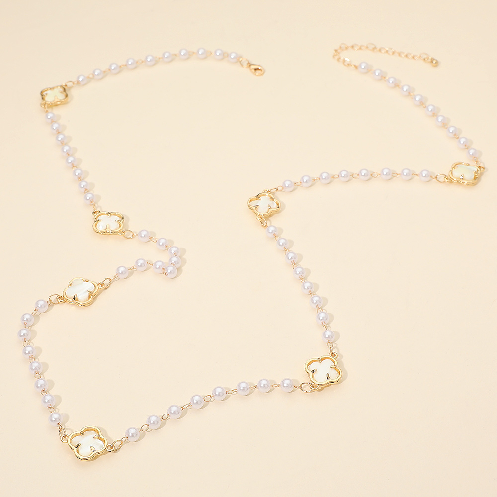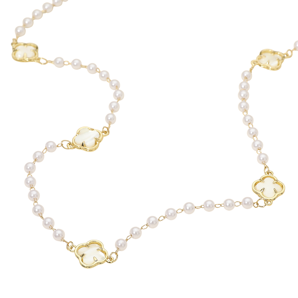 Clear Quatrefoil Cluster Station Pearl Long Necklace Clear Quatrefoil Cluster Station Pearl Long Necklace Clear Quatrefoil Cluster Station Pearl Long Necklace