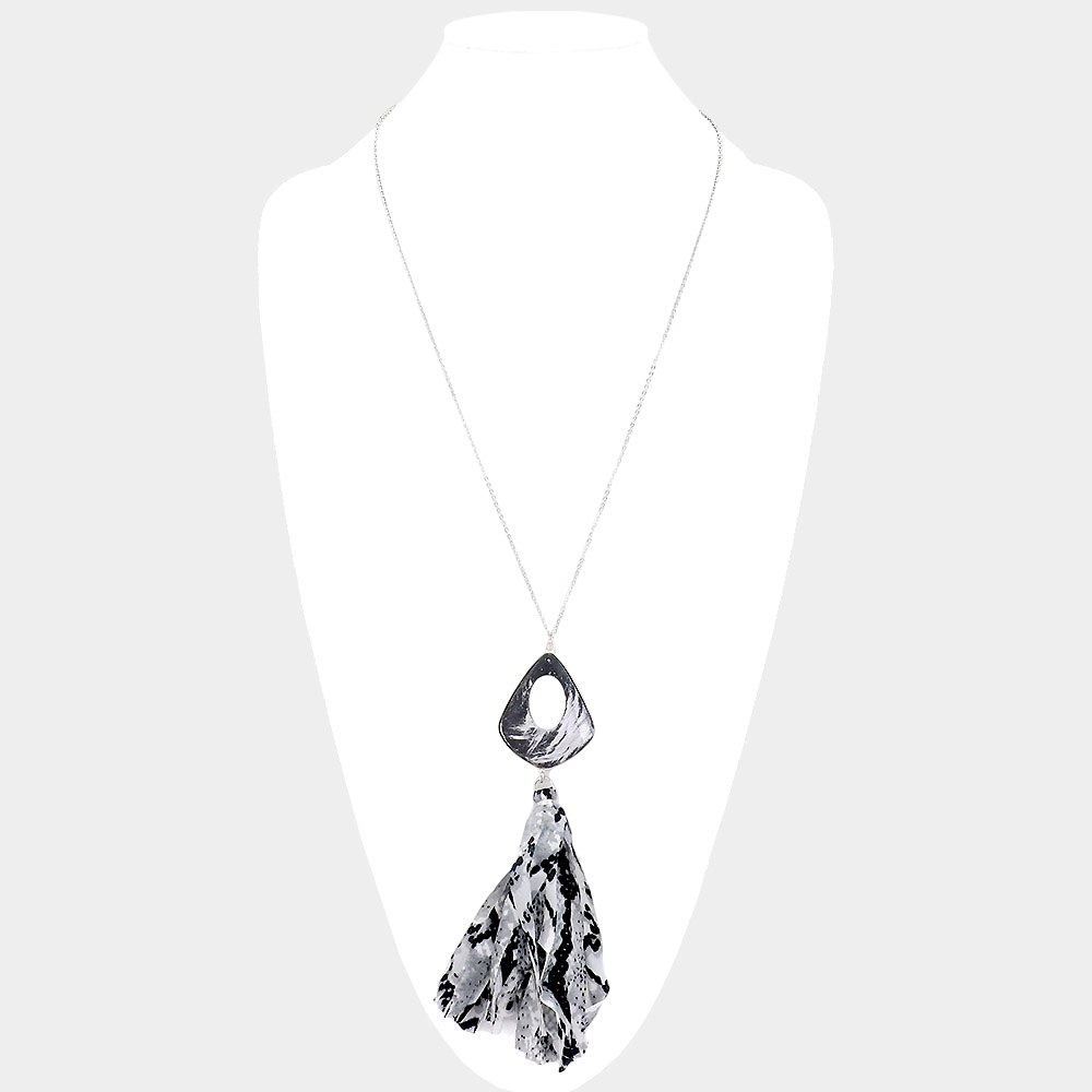 Multi Pattern Fabric Tassel Pendant Long Necklace