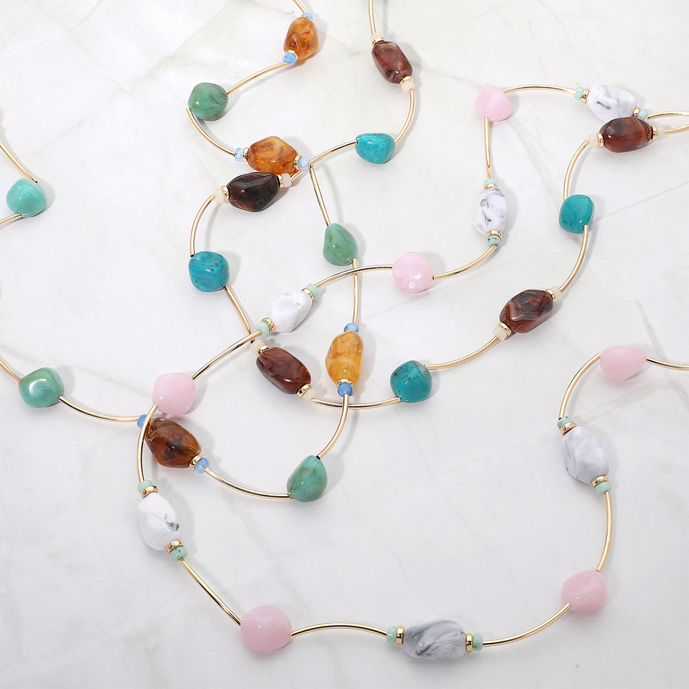 Resin Pebble Curved Metal Bar Beaded Long Necklace Resin Pebble Curved Metal Bar Beaded Long Necklace Resin Pebble Curved Metal Bar Beaded Long Necklace