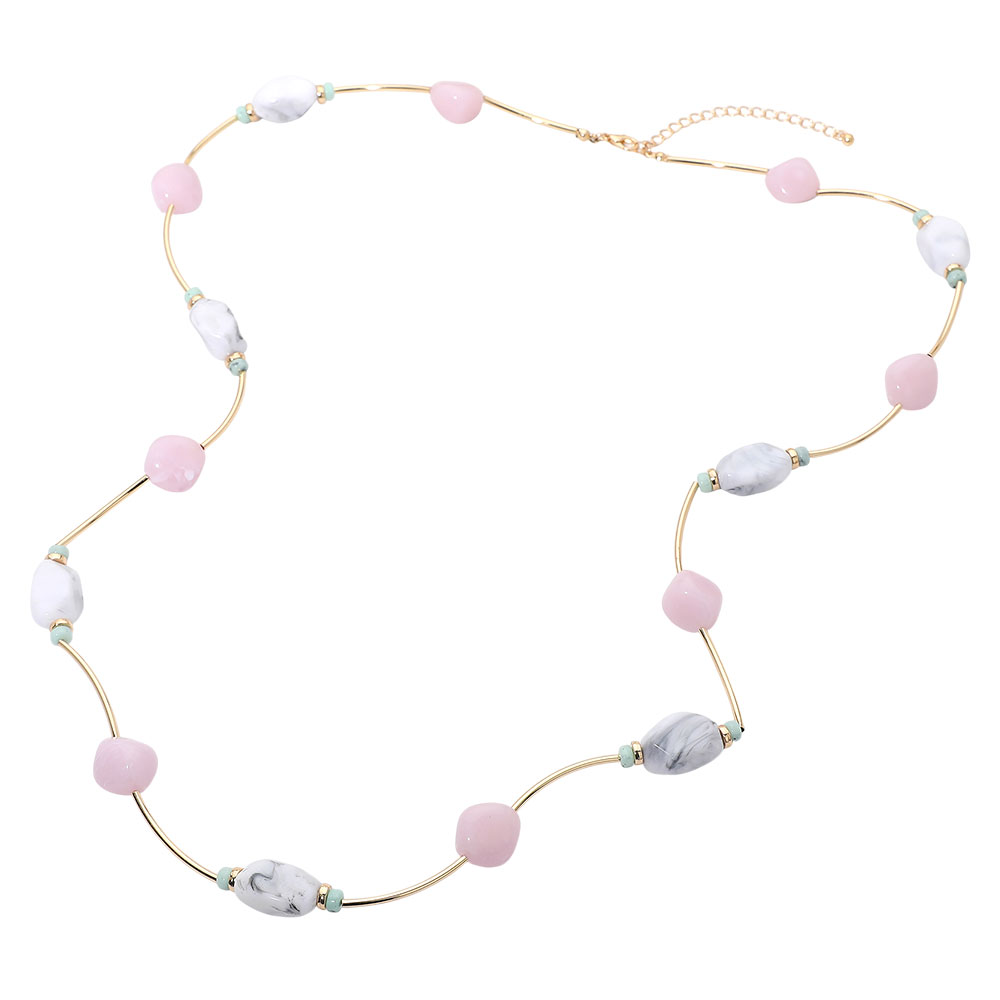 Resin Pebble Curved Metal Bar Beaded Long Necklace