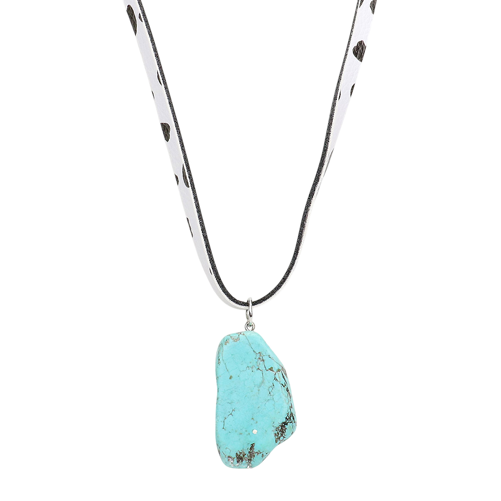 Turquoise Pendant Cow Patterned Faux Leather Long Necklace
