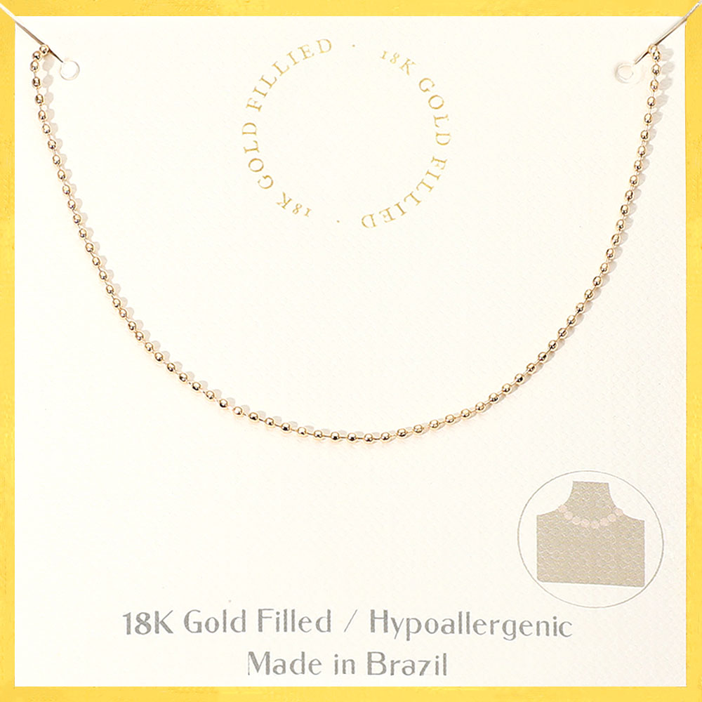 Details • Necklace Size : 16" + 2.25" L • Decor Size : 0.1" L • Elevate your everyday look with this 18K gold filled beaded chain necklace, crafted for timeless elegance and comfort. Its minimalist design and hypoallergenic finish make it ideal for daily wear or layering. Expertly made in Brazil, it offers a refined, radiant touch to any outfit. • Lead and Nickel Compliant • Hypoallergenic • Gold Filled • Made In Brazil