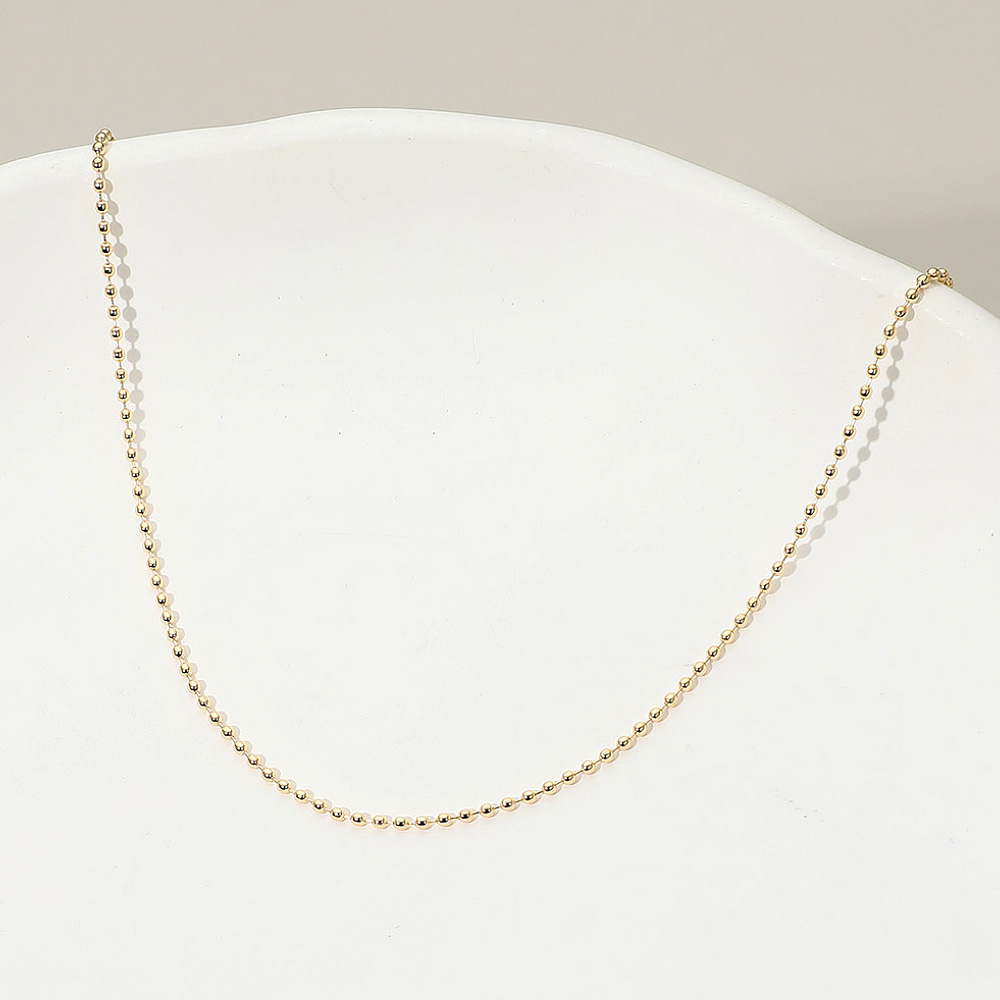 Details • Necklace Size : 18" L • Decor Size : 0.1" L (2mm) • Elegant bead chain necklace featuring small, polished round links that create a smooth and refined texture. A timeless minimalist piece perfect for layering or wearing solo, adding effortless shine to both casual and dressy looks. • Gold Filled • Lead and Nickel Compliant • Made In Brazil