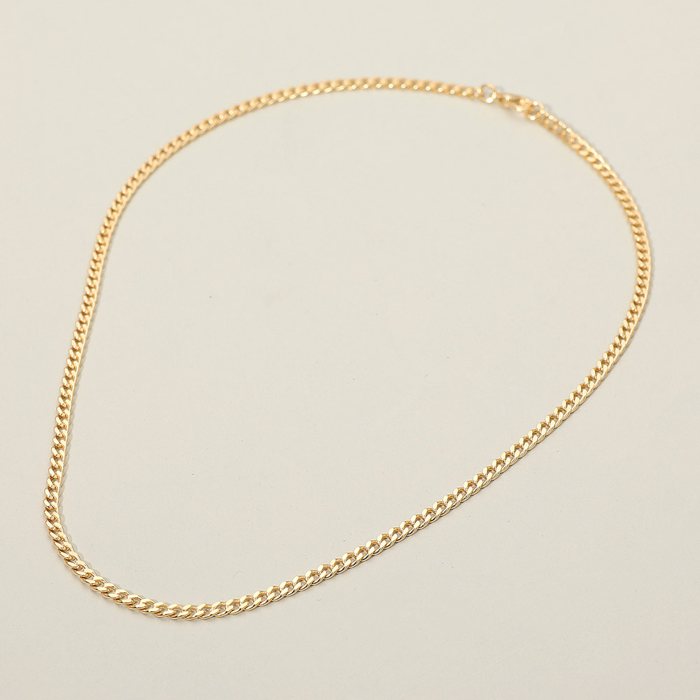 Details • Necklace Size : 16" L • Decor Size : 0.1" L (3mm) • Elegant curb chain necklace showcasing a smooth, reflective finish and uniform linked pattern. Its classic yet modern appeal makes it perfect for layering or wearing solo, offering effortless sophistication for any style or occasion. • Lead and Nickel Compliant • Gold Filled • Made In Brazil