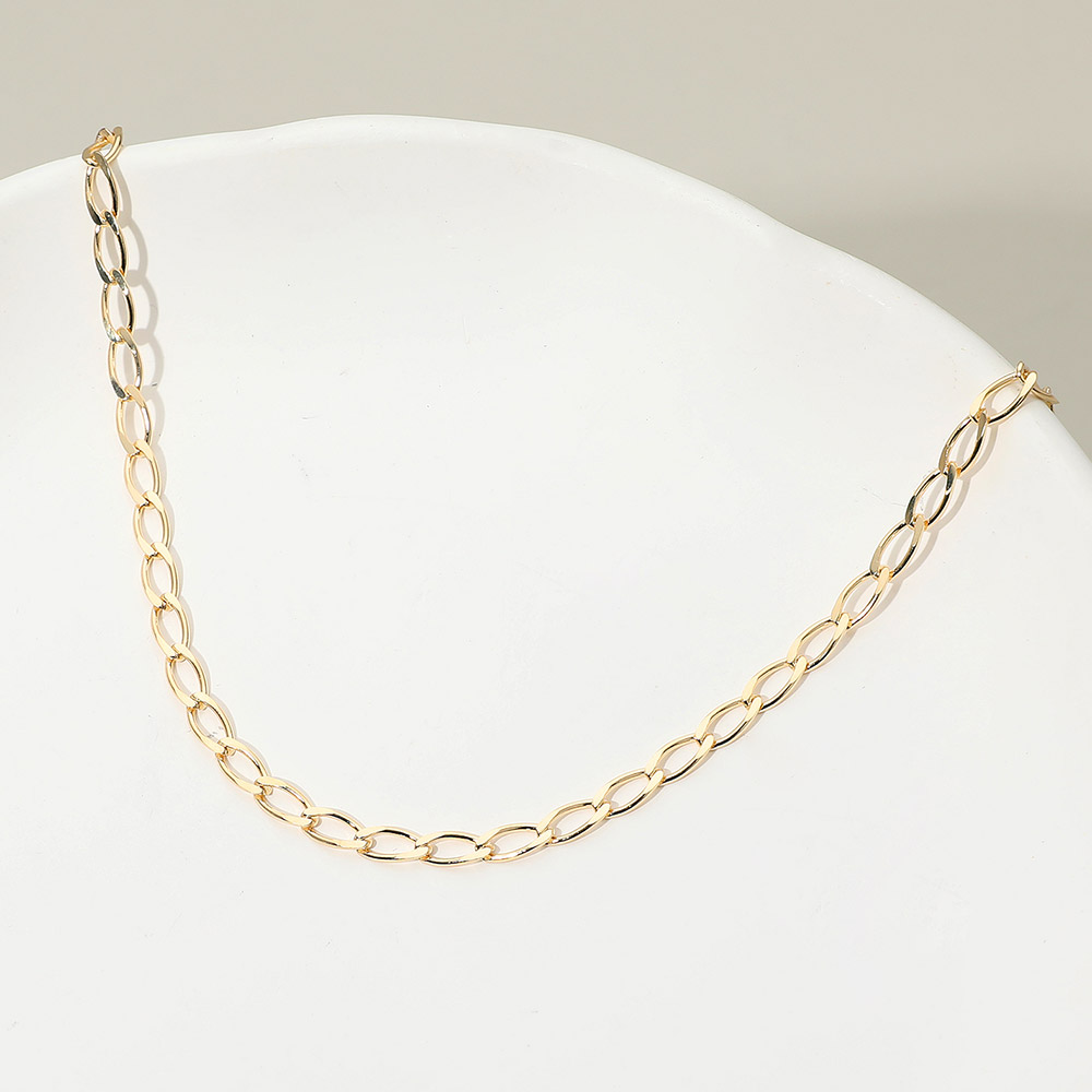 Details • Necklace Size : 18" L • Decor Size : 0.2" L (4mm) • Elegant oval link chain necklace featuring smooth, polished links that create a refined, timeless look. Ideal for everyday wear or layering, this classic piece adds subtle sophistication and pairs beautifully with any pendant or outfit style. • Gold Filled • Lead and Nickel Compliant • Made In Brazil