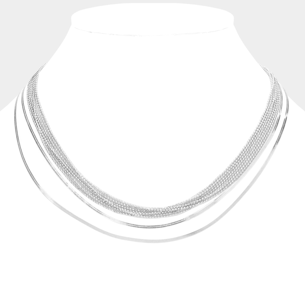 Tiny Pearl Metal Chain Link Triple Layered Bib Necklace