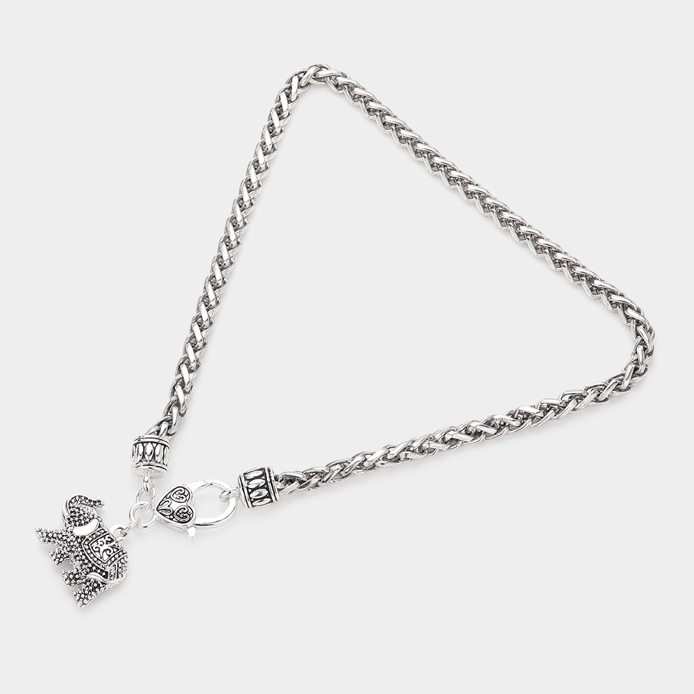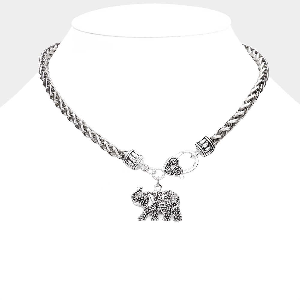 Antique Metal Elephant Heart Pendant Toggle Necklace