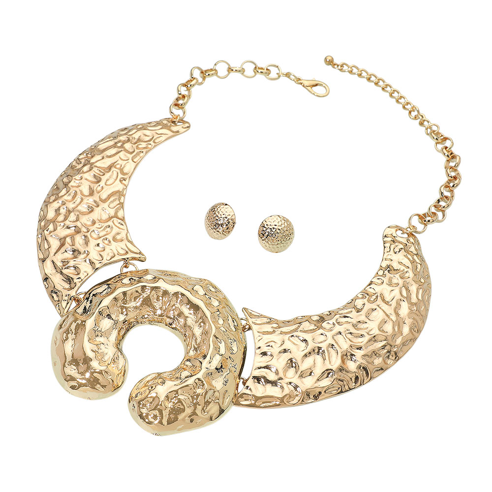 • Command attention with this bold textured collar necklace and matching earrings. Featuring a sculpted crescent design with artistic detailing, this statement set adds modern sophistication and a touch of drama, perfect for evening wear or standout fashion moments.
