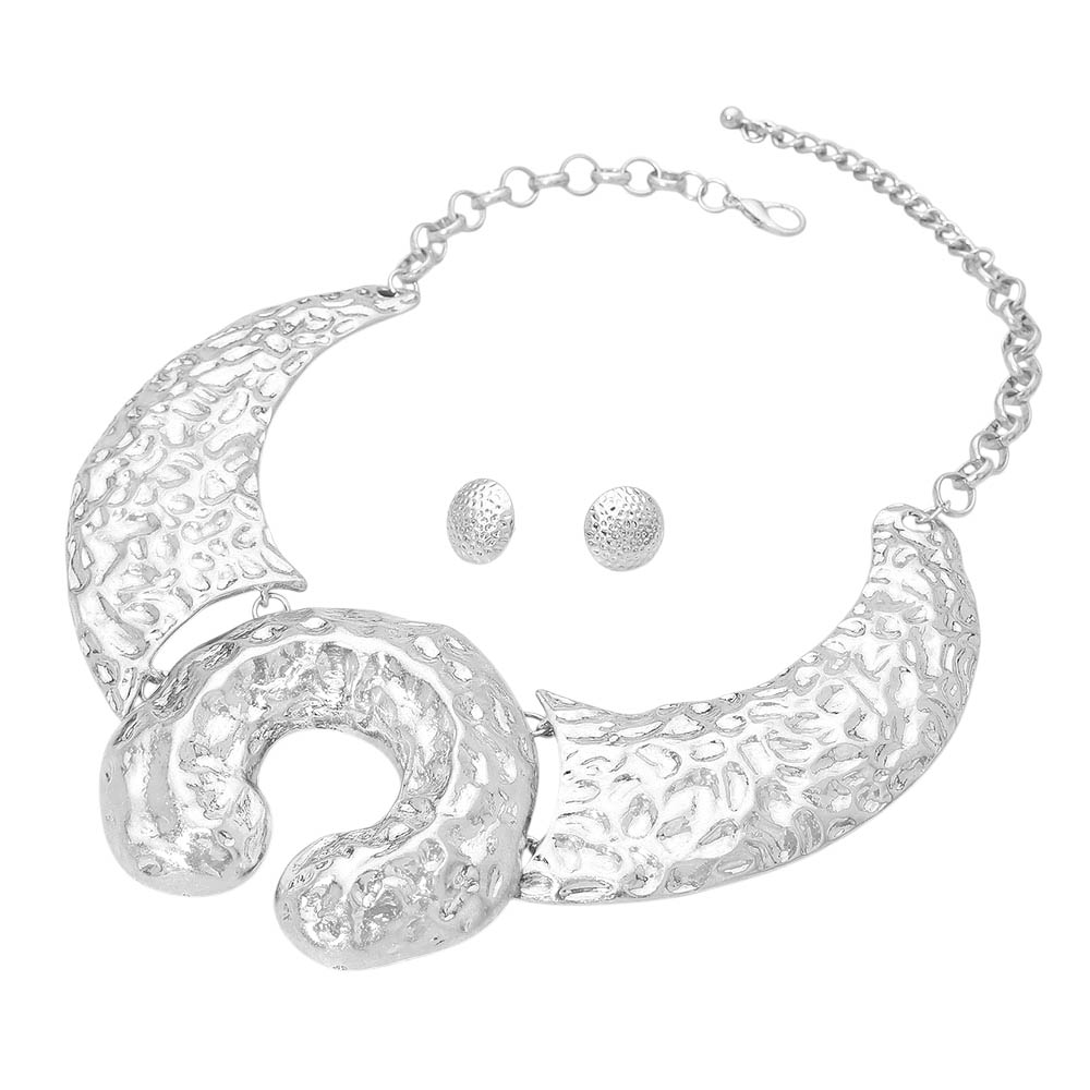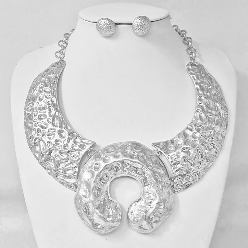 Hammered Metal Statement Collar Necklace