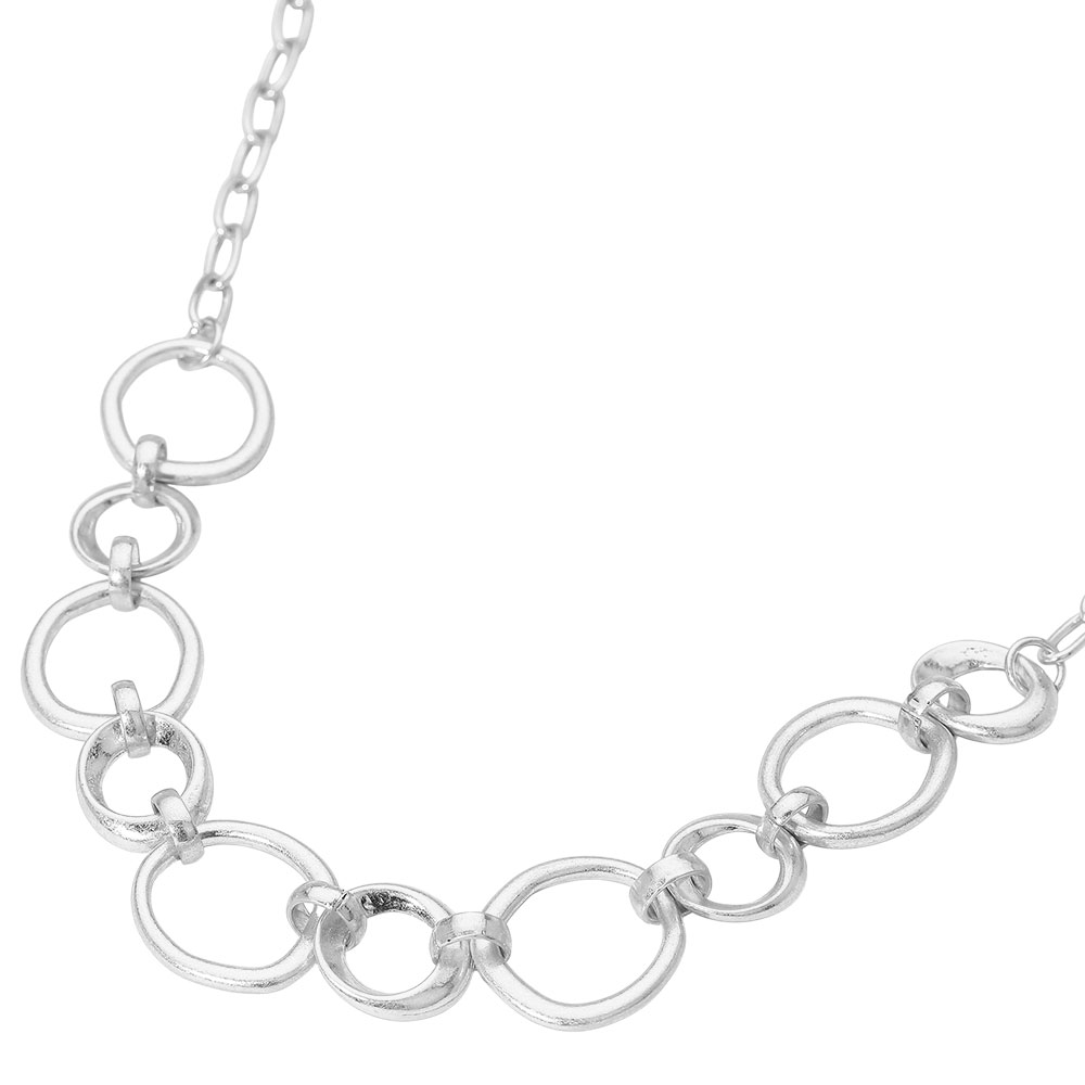 Details • Necklace Size : 18" + 3.25" L • Decor Size : 0.9" L • Elevate your look with a linked circle chain necklace featuring a sleek, open-link design that offers modern elegance and everyday versatility. Perfect for layering or wearing solo, this timeless accessory transitions effortlessly from casual wear to evening styling and easy gift giving. • Lead and Nickel Compliant