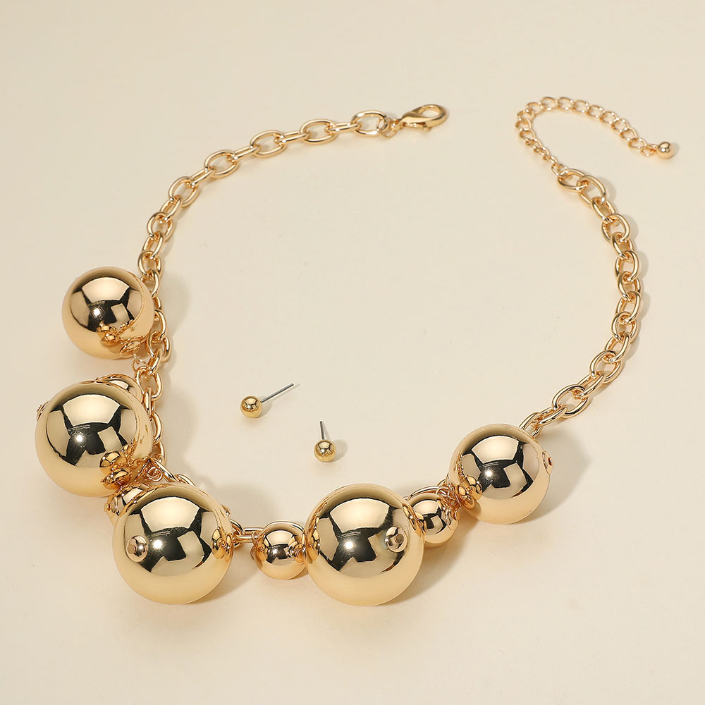 Details • Necklace Size : 18" + 3" L • Decor Size : 1.75" L • Earrings Size : 0.25" L • Make a bold statement with this oversized bead necklace and matching stud earrings set. Featuring chunky polished beads on a sleek chain, this jewelry set adds modern glamour to party outfits, casual looks, and elegant evening styles. Perfect for standout fashion. • Lead and Nickel Compliant