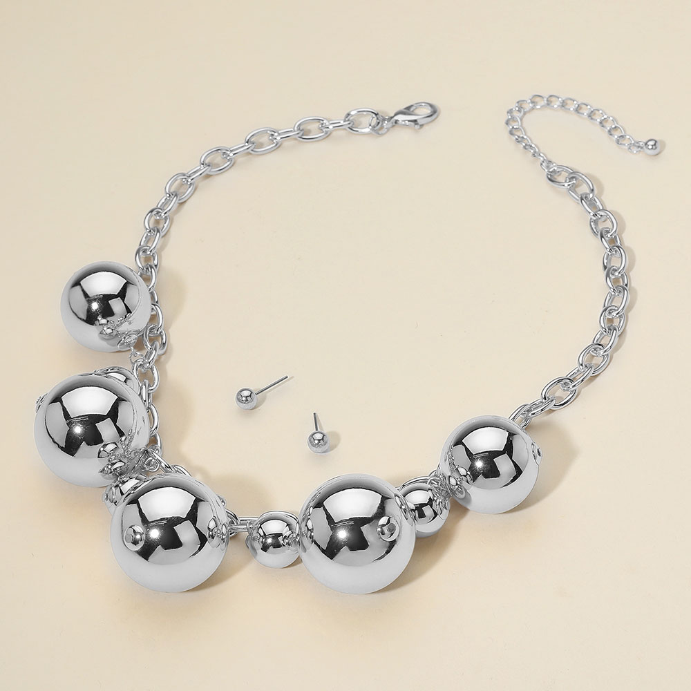Details • Necklace Size : 18" + 3" L • Decor Size : 1.75" L • Earrings Size : 0.25" L • Make a bold statement with this oversized bead necklace and matching stud earrings set. Featuring chunky polished beads on a sleek chain, this jewelry set adds modern glamour to party outfits, casual looks, and elegant evening styles. Perfect for standout fashion. • Lead and Nickel Compliant