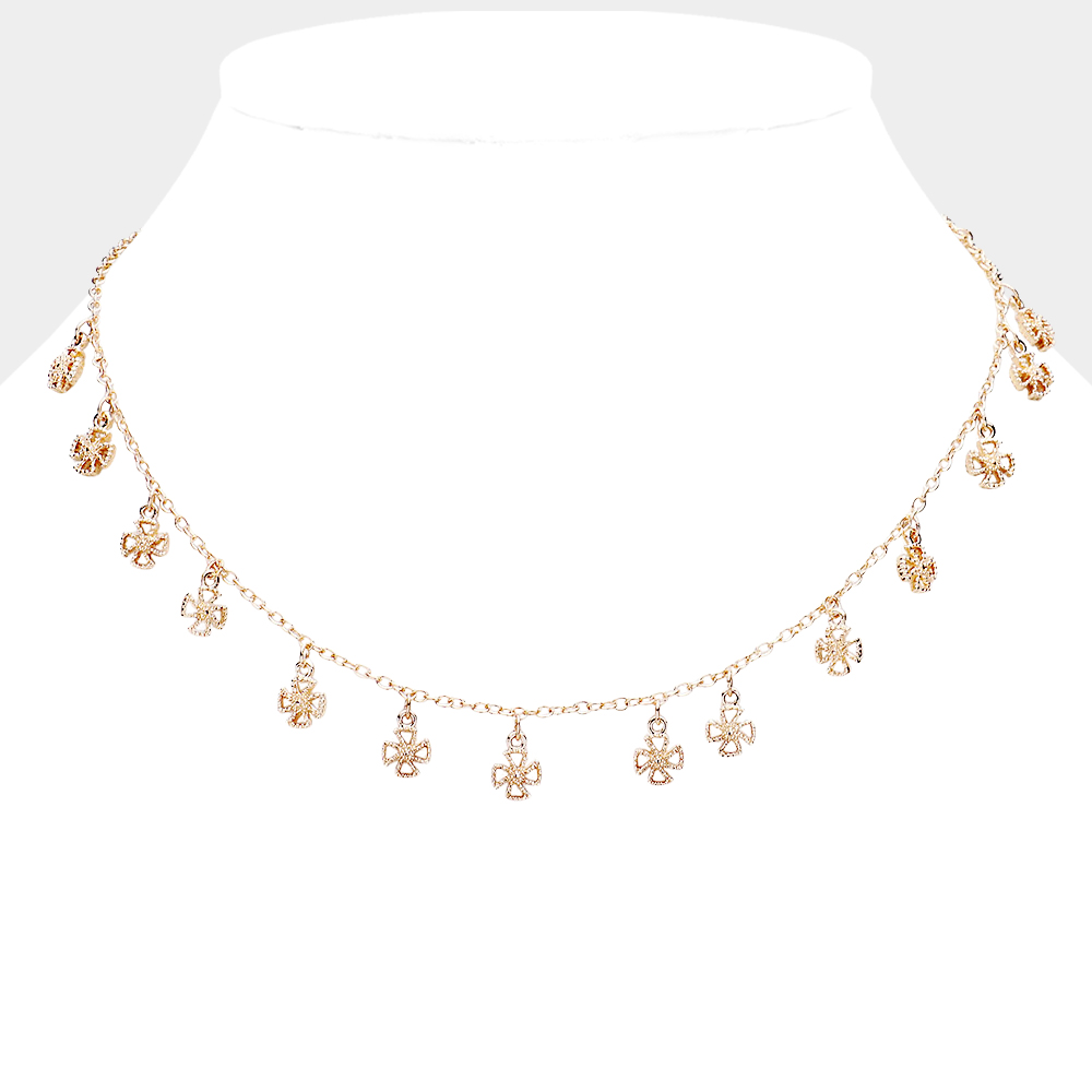 Cross CZ Stone Station Rhinestone Paved Necklace Jewelry Set
