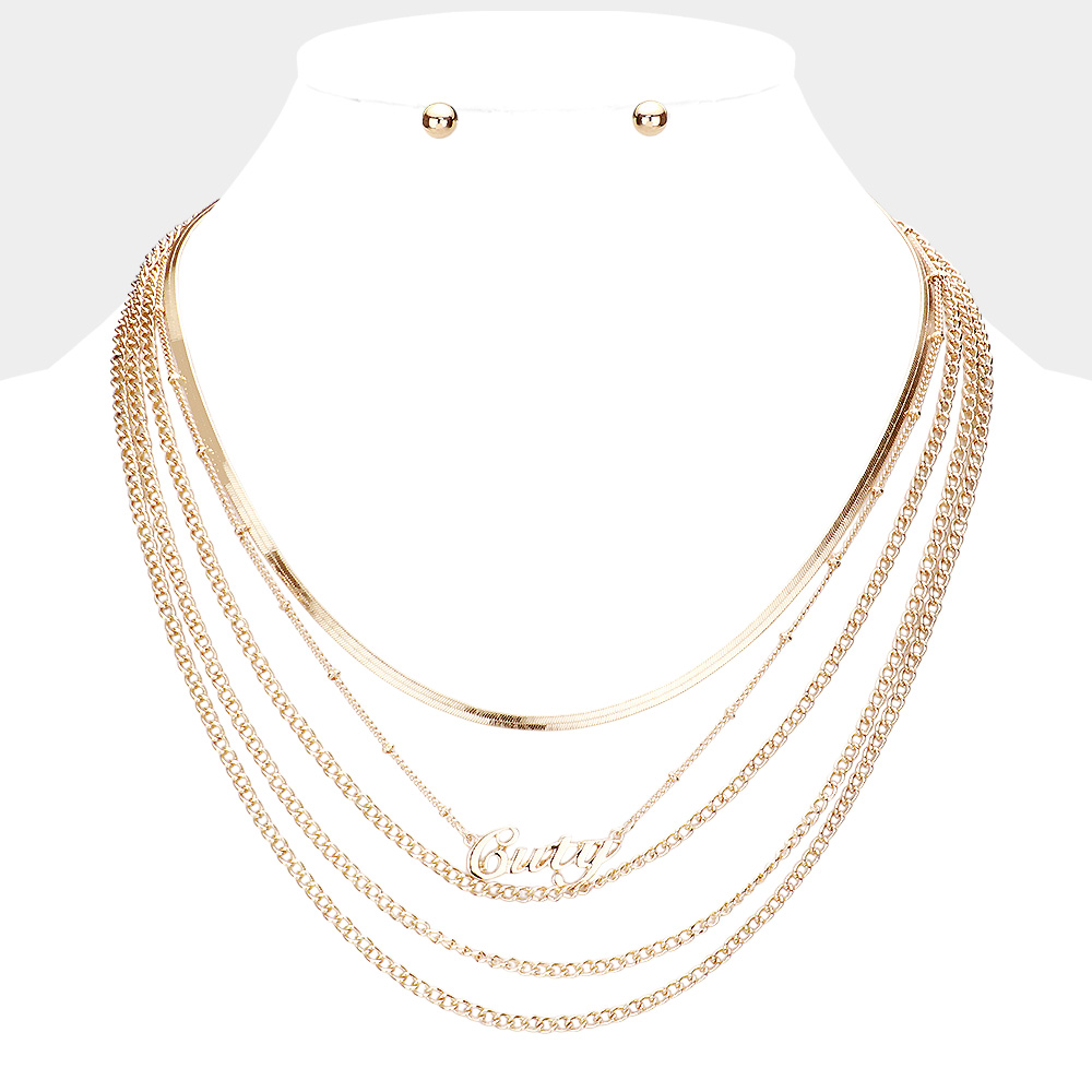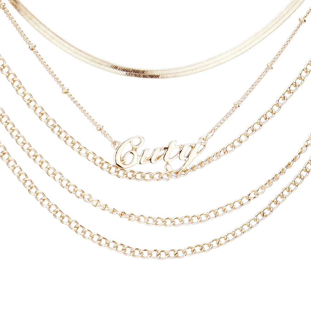 Cuty Pendant Multi Layered Metal Chain Bib Message Necklace
