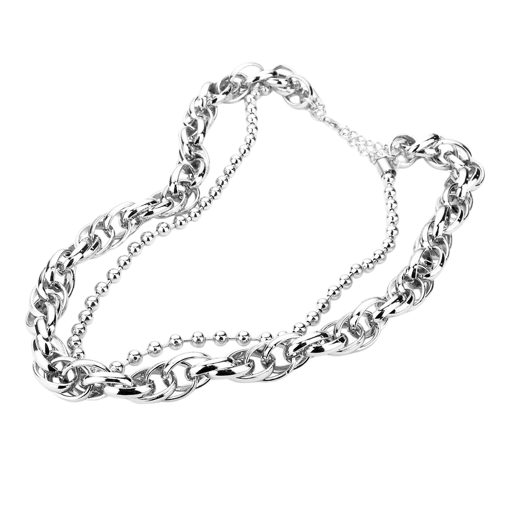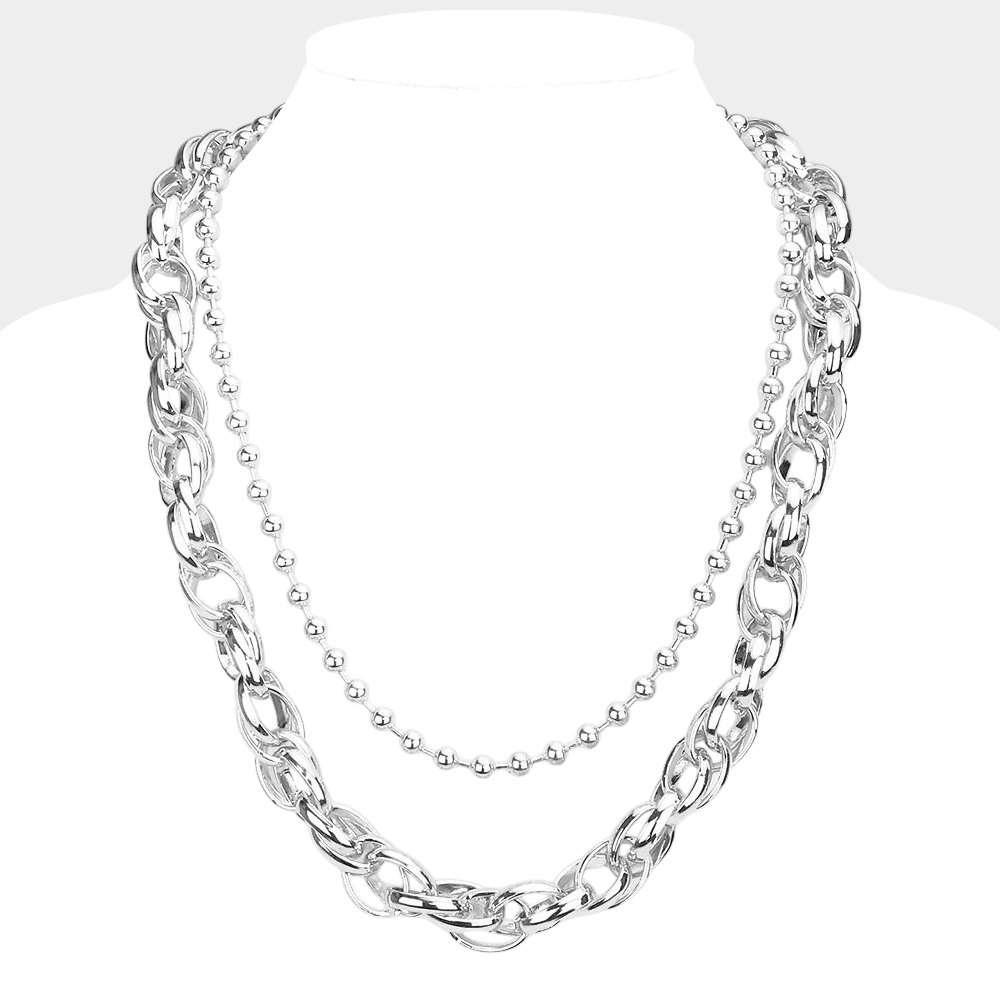 Double Layered Metal Ball Open Oval Link Bib Necklace