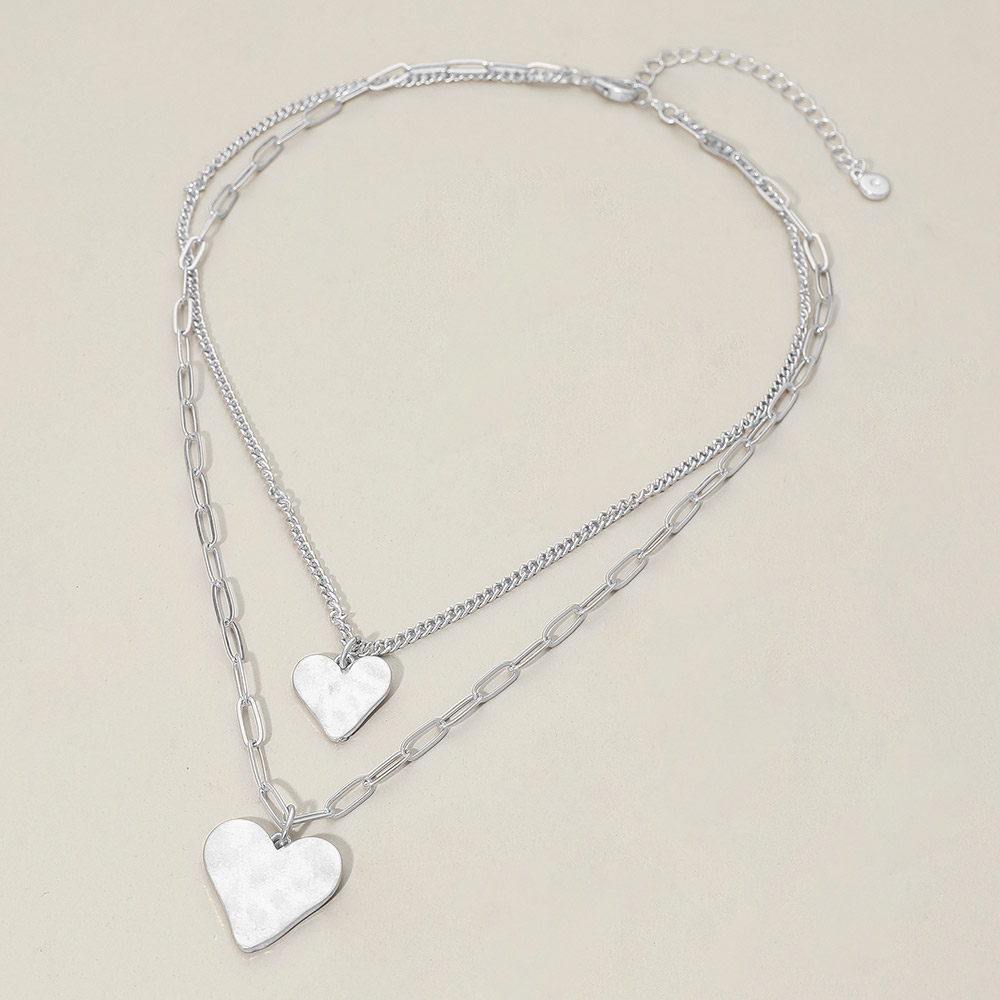 Details • Necklace Size : 16" + 3" L • Decor Size : 2.25" L • Pendant Size : 0.8" X 0.8" • Chic layered necklace featuring dual heart pendants for effortless statement styling. Perfect for casual outfits, date nights, or special occasions, it adds dimension and charm to any look while offering a versatile accessory ideal for gifting or daily wear. • Lead and Nickel Compliant