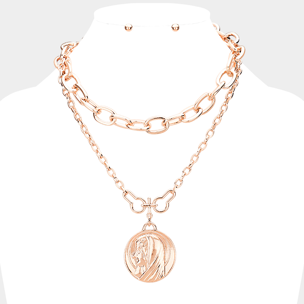 14K Gold Plated CZ Stone Paved Cross Pendant Double Chain Necklace